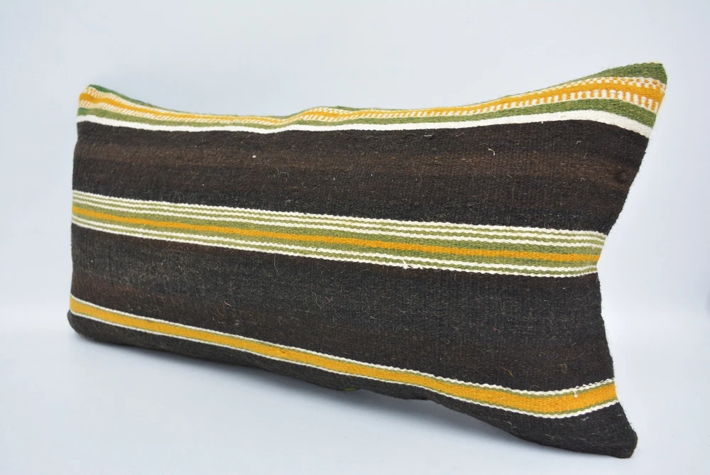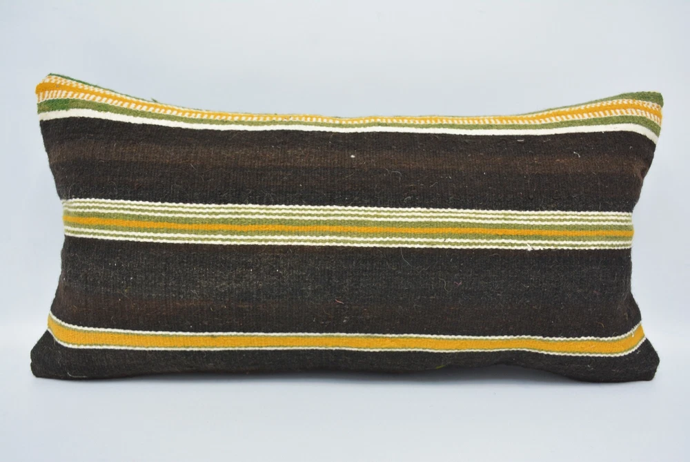 Kilim Pillow Cover, Pillow for Couch, 12"x24" Brown Pillow Covers