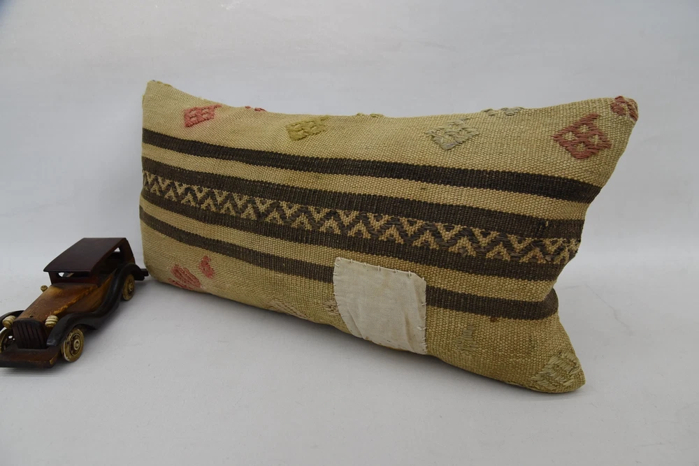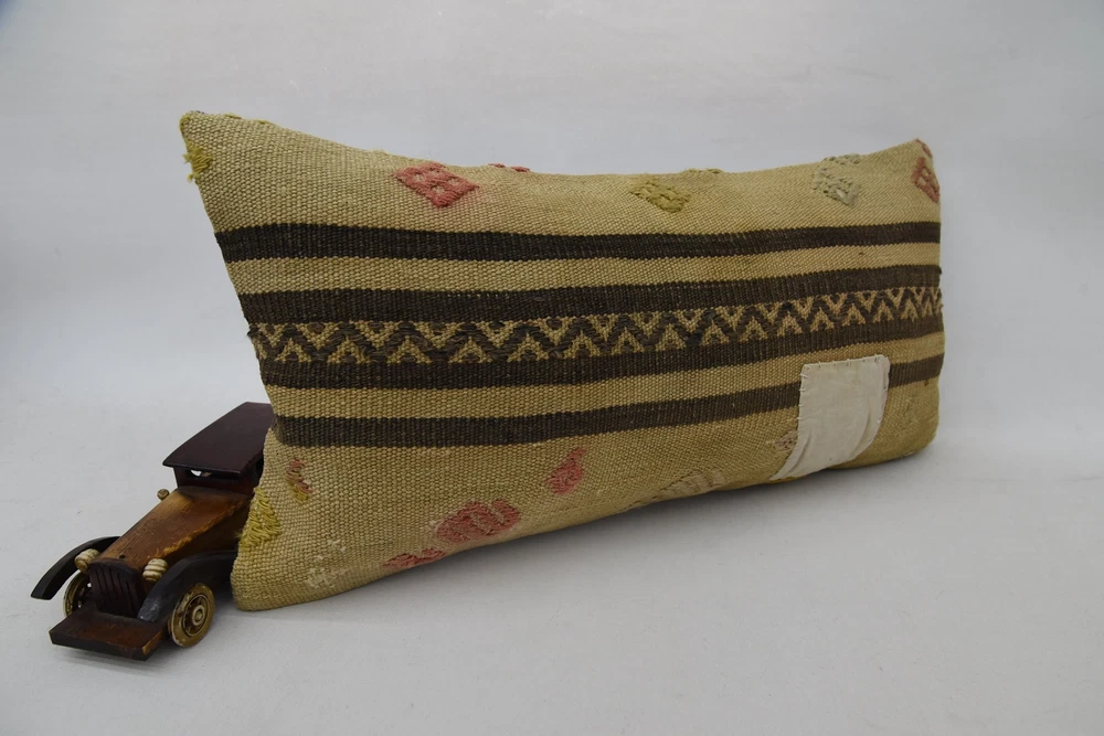 Kilim Pillow Covers, Kilim Pillow, 12"x24" Brown Kilim Pillow