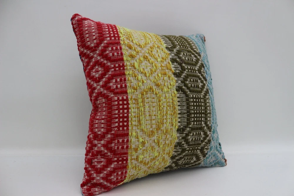 Kilim Pillow Covers, Pillow Cover, Turkish Pillow, 16"x16" Yellow Cushion