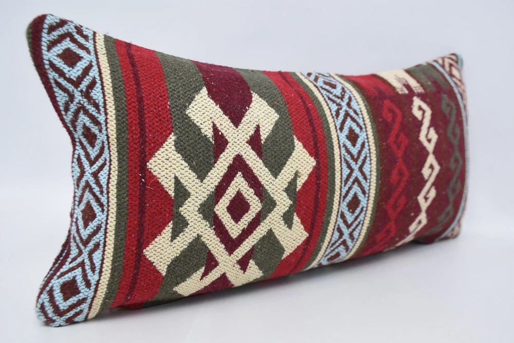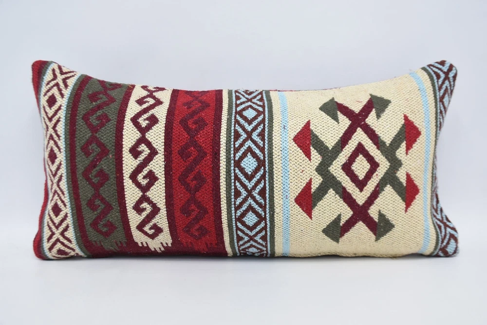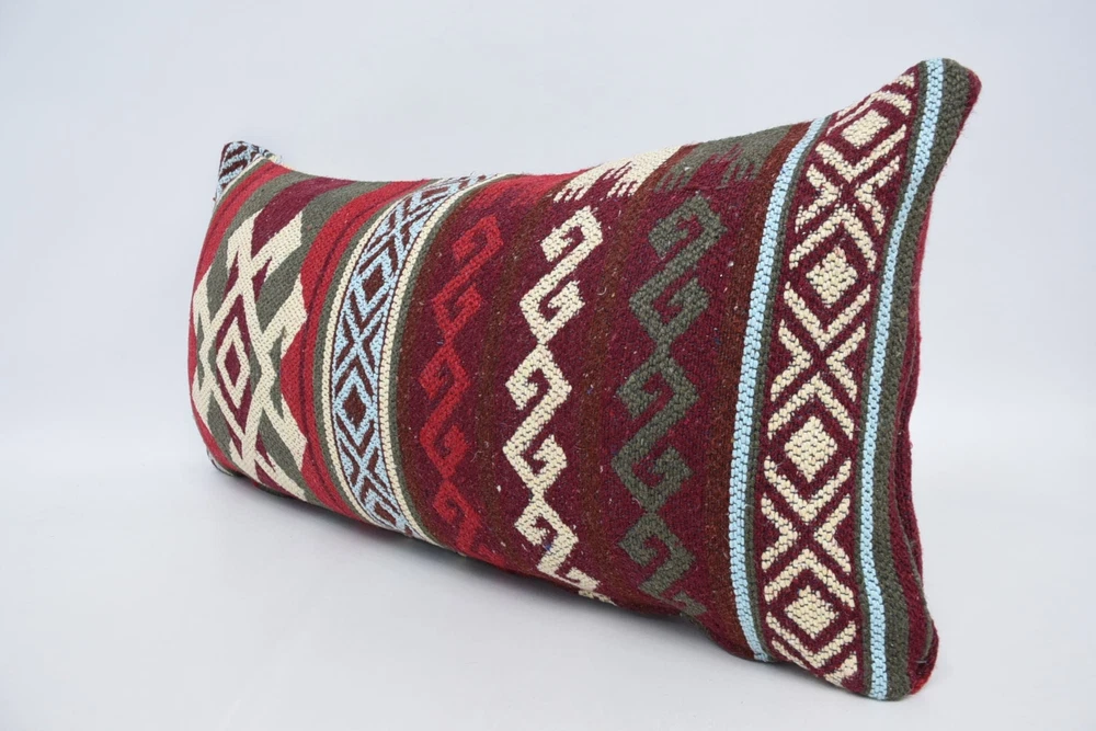 Kilim Pillow Covers, Turkish Kilim Pillow, 12"x24" Red Pillow Covers