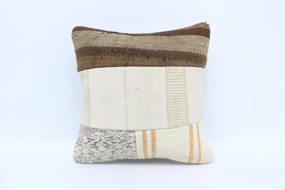Kilim Pillow, Kilim Pillow Covers, 16"x16" White Kilim Pillow, Pillow for Sofa