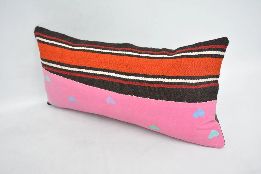 Kilim Pillow, Personalized Gift, Kilim Pillows, 12"x24" Pink Pillow Case