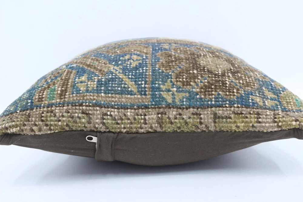 Kilim Pillow Details: All of my beautiful pillow covers or cushion cases are designed and made by me. I am making my throw pillow covers from handmade vintage rugs, Turkish rugs. Therefore, each of my vintage kilim pillowcase is one of kind. These cushions covers are piece of an art. The size of this pillow is 16 x 16 inches or 40 x 40 cm. The front side of this decorative pillow cover, cushion cover is wool on wool vintage kilim rug. The backside of this throw is high quality cotton fabric with a high quality zipper. This listing has 2 option for this handmade pillow. You can choose with insert or without insert. The listing photos is with insert in the pillowcase which is just for demonstration purpose. All of my vintage Turkish rugs have been professionally washed before I cut them as pillow case or cushion case so these kilim covers are 100 posent clean and ready to use. Due to the age and handmade nature of these vintage rugs, there might be imperfections and flaws that are not considered defects. This is a piece of a handmade vintage rug with minor signs of wear consistent with age and use that give it an antique look. You can see the condition of the rug pillow clearly in the detailed photos. I am going to ship your order of decorative pillow as soon as possible. I usually ship in the next day with DHL Express or FedEx which will deliver the kilim pillow, cushion cover just in 3-5 business days. It is my responsible until you receive pillow cover or pillow cover with insert at your door. If the pillow cover or insert get lost or damage during the shipping, I will ship the new kilim pillow cover or pillow insert for free as soon as possible. I take photos of my throw pillows indoor with professional camera which shows the real colors. The photos of these Turkish pillow covers are not altered. Keep in mind the colors of the rug vary slightly in different lights. Please contact to me for additional photos. I take the photos of my vintage rugs outside with daylight to show you the real and natural colors. My photos are not altered. Keep in mind the colors of the rug vary slightly in different lights. Please contact to me for additional photos. SATISFACTION GUARANTEED for your order in my shop. Your SATISFACTION is the most important to me. Please write me if you have any question or if you don't like anything from my pillow covers, cushion covers. If any reason, you are not happy from your Turkish pillow cover, I accept return without any hassle. Please read my shop policies for details. This cushion case or pillow cover can be used as decorative throw pillow, gift pillow, Christmas pillow case, bedding pillow, lumbar pillow, sofa pillow, bohemian pillow, boho pillow. You can find in any kind of Turkish kilim pillow cover in different design such as striped pillow, embroidered pillow, and geometric pillow.