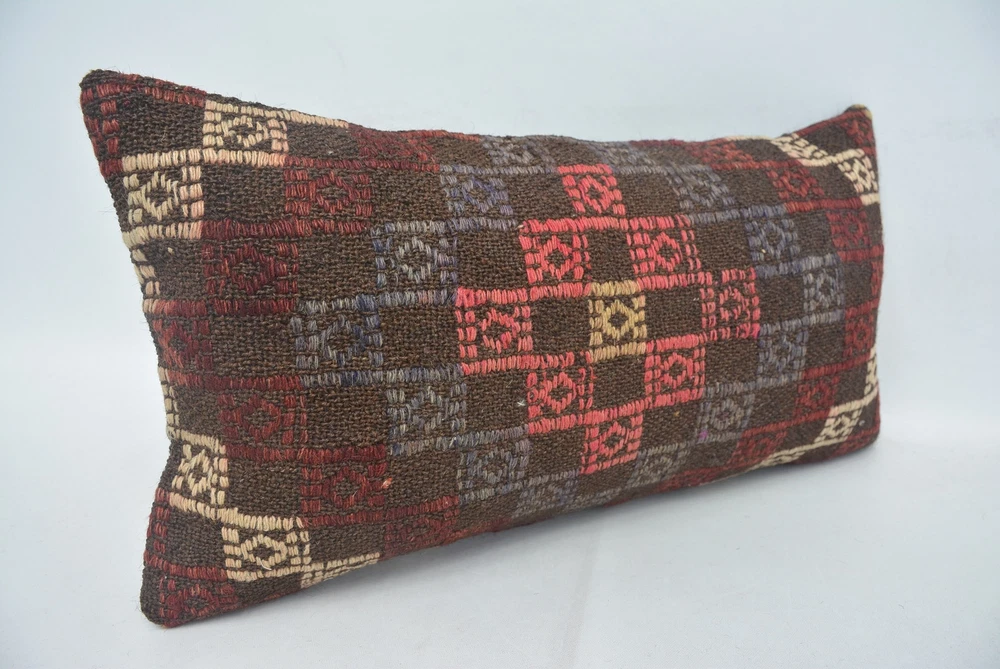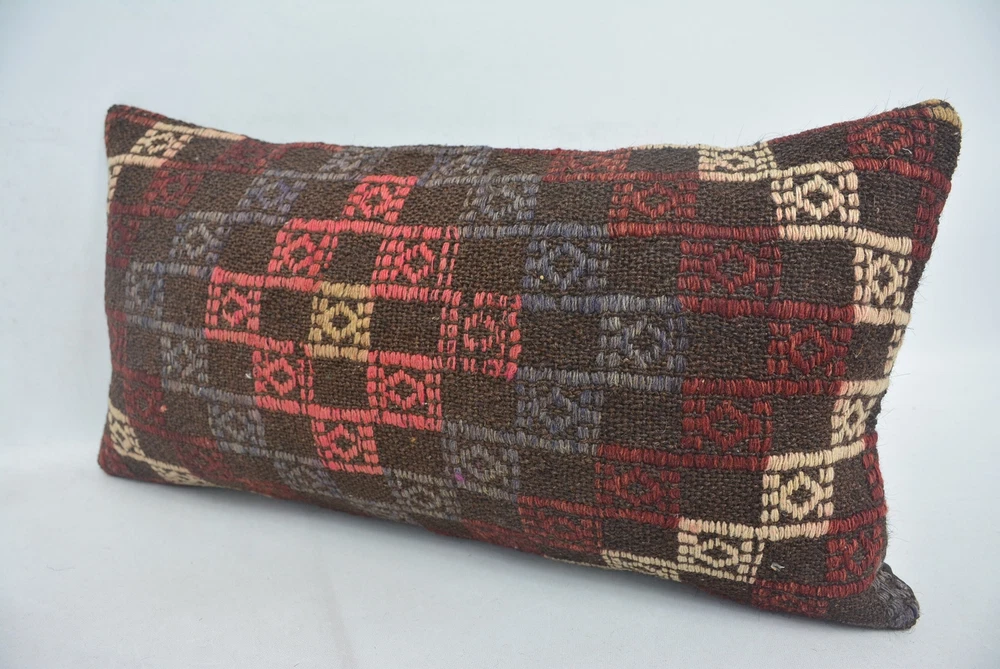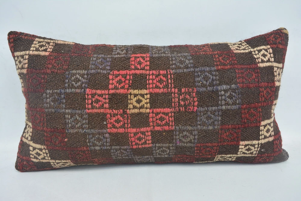 Kilim Pillows, Designer Pillows, Pillow for Couch, 12"x24" Brown Pillow Cover