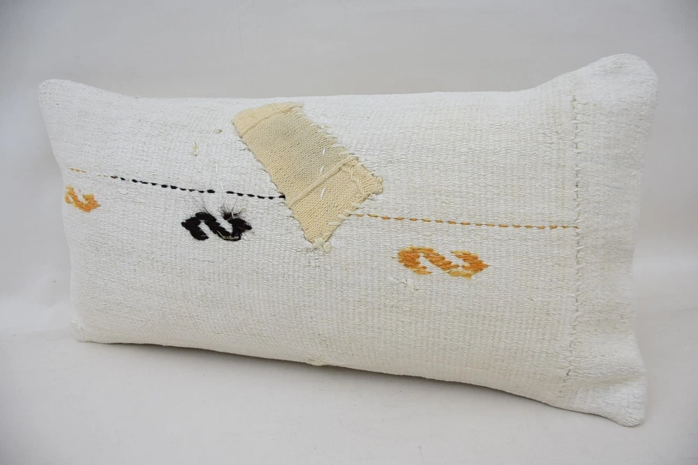 Kilim Pillows, Kilim Pillow Cases, 12"x24" White Cushion, Throw Pillow Cover