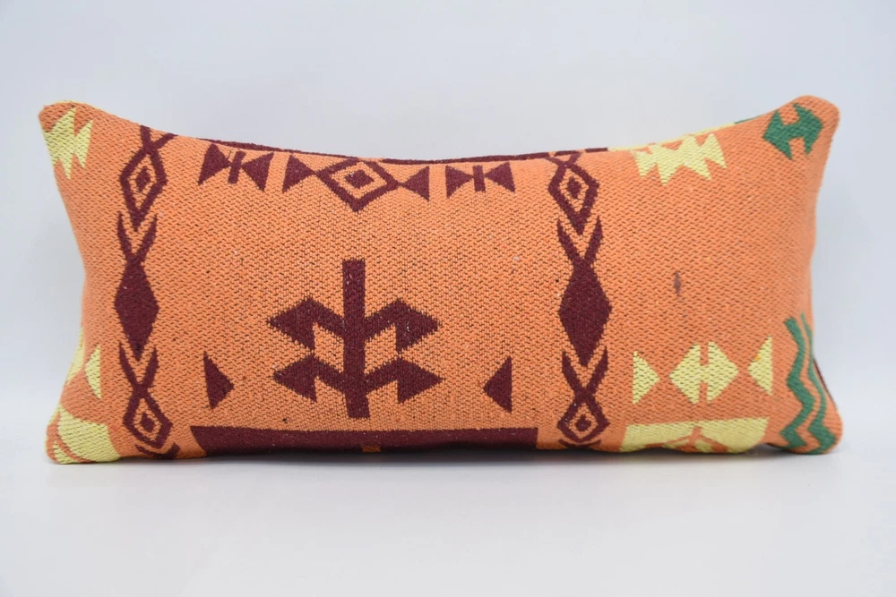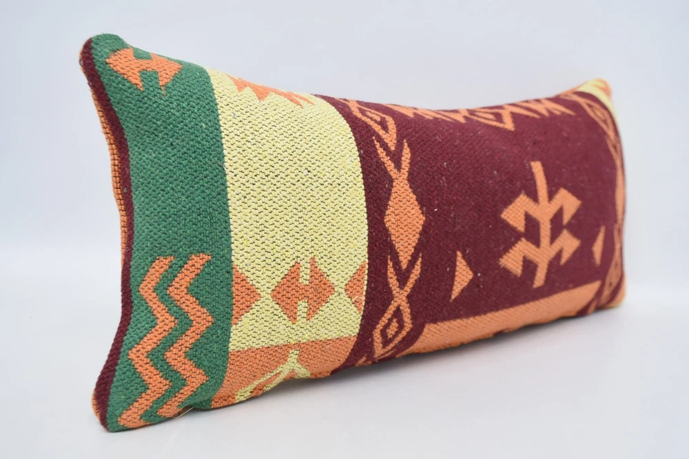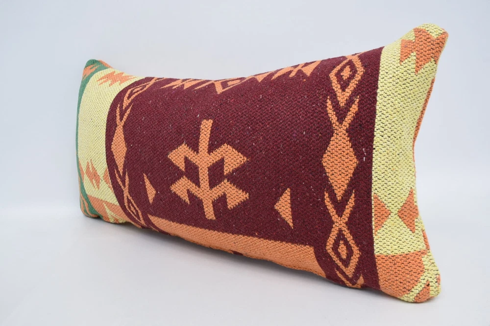 Kilim Pillows, Kilim Pillow, Turkish Pillow, 12"x24" Red Pillow Cover