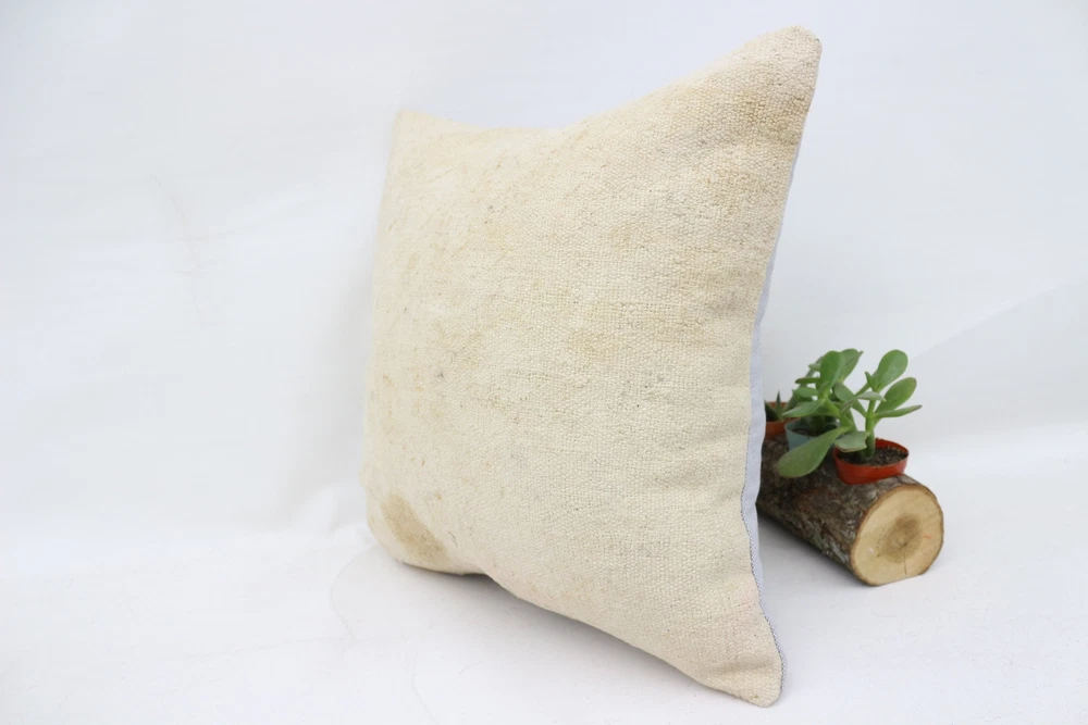 Kilim Pillow Details: All of my beautiful pillow covers or cushion cases are designed and made by me. I am making my throw pillow covers from handmade vintage rugs, Turkish rugs. Therefore, each of my vintage kilim pillowcase is one of kind. These cushions covers are piece of an art. The size of this pillow is 16 x 16 inches or 40 x 40 cm. The front side of this decorative pillow cover, cushion cover is wool on wool vintage kilim rug. The backside of this throw is high quality cotton fabric with a high quality zipper. This listing has 2 option for this handmade pillow. You can choose with insert or without insert. The listing photos is with insert in the pillowcase which is just for demonstration purpose. All of my vintage Turkish rugs have been professionally washed before I cut them as pillow case or cushion case so these kilim covers are 100 posent clean and ready to use. Due to the age and handmade nature of these vintage rugs, there might be imperfections and flaws that are not considered defects. This is a piece of a handmade vintage rug with minor signs of wear consistent with age and use that give it an antique look. You can see the condition of the rug pillow clearly in the detailed photos. I am going to ship your order of decorative pillow as soon as possible. I usually ship in the next day with DHL Express or FedEx which will deliver the kilim pillow, cushion cover just in 3-5 business days. It is my responsible until you receive pillow cover or pillow cover with insert at your door. If the pillow cover or insert get lost or damage during the shipping, I will ship the new kilim pillow cover or pillow insert for free as soon as possible. I take photos of my throw pillows indoor with professional camera which shows the real colors. The photos of these Turkish pillow covers are not altered. Keep in mind the colors of the rug vary slightly in different lights. Please contact to me for additional photos. I take the photos of my vintage rugs outside with daylight to show you the real and natural colors. My photos are not altered. Keep in mind the colors of the rug vary slightly in different lights. Please contact to me for additional photos. SATISFACTION GUARANTEED for your order in my shop. Your SATISFACTION is the most important to me. Please write me if you have any question or if you don't like anything from my pillow covers, cushion covers. If any reason, you are not happy from your Turkish pillow cover, I accept return without any hassle. Please read my shop policies for details. This cushion case or pillow cover can be used as decorative throw pillow, gift pillow, Christmas pillow case, bedding pillow, lumbar pillow, sofa pillow, bohemian pillow, boho pillow. You can find in any kind of Turkish kilim pillow cover in different design such as striped pillow, embroidered pillow, and geometric pillow.
