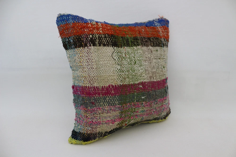 Kilim Pillow Details: All of my beautiful pillow covers or cushion cases are designed and made by me. I am making my throw pillow covers from handmade vintage rugs, Turkish rugs. Therefore, each of my vintage kilim pillowcase is one of kind. These cushions covers are piece of an art. The size of this pillow is 16 x 16 inches or 40 x 40 cm. The front side of this decorative pillow cover, cushion cover is wool on wool vintage kilim rug. The backside of this throw is high quality cotton fabric with a high quality zipper. This listing has 2 option for this handmade pillow. You can choose with insert or without insert. The listing photos is with insert in the pillowcase which is just for demonstration purpose. All of my vintage Turkish rugs have been professionally washed before I cut them as pillow case or cushion case so these kilim covers are 100 posent clean and ready to use. Due to the age and handmade nature of these vintage rugs, there might be imperfections and flaws that are not considered defects. This is a piece of a handmade vintage rug with minor signs of wear consistent with age and use that give it an antique look. You can see the condition of the rug pillow clearly in the detailed photos. I am going to ship your order of decorative pillow as soon as possible. I usually ship in the next day with DHL Express or FedEx which will deliver the kilim pillow, cushion cover just in 3-5 business days. It is my responsible until you receive pillow cover or pillow cover with insert at your door. If the pillow cover or insert get lost or damage during the shipping, I will ship the new kilim pillow cover or pillow insert for free as soon as possible. I take photos of my throw pillows indoor with professional camera which shows the real colors. The photos of these Turkish pillow covers are not altered. Keep in mind the colors of the rug vary slightly in different lights. Please contact to me for additional photos. I take the photos of my vintage rugs outside with daylight to show you the real and natural colors. My photos are not altered. Keep in mind the colors of the rug vary slightly in different lights. Please contact to me for additional photos. SATISFACTION GUARANTEED for your order in my shop. Your SATISFACTION is the most important to me. Please write me if you have any question or if you don't like anything from my pillow covers, cushion covers. If any reason, you are not happy from your Turkish pillow cover, I accept return without any hassle. Please read my shop policies for details. This cushion case or pillow cover can be used as decorative throw pillow, gift pillow, Christmas pillow case, bedding pillow, lumbar pillow, sofa pillow, bohemian pillow, boho pillow. You can find in any kind of Turkish kilim pillow cover in different design such as striped pillow, embroidered pillow, and geometric pillow.