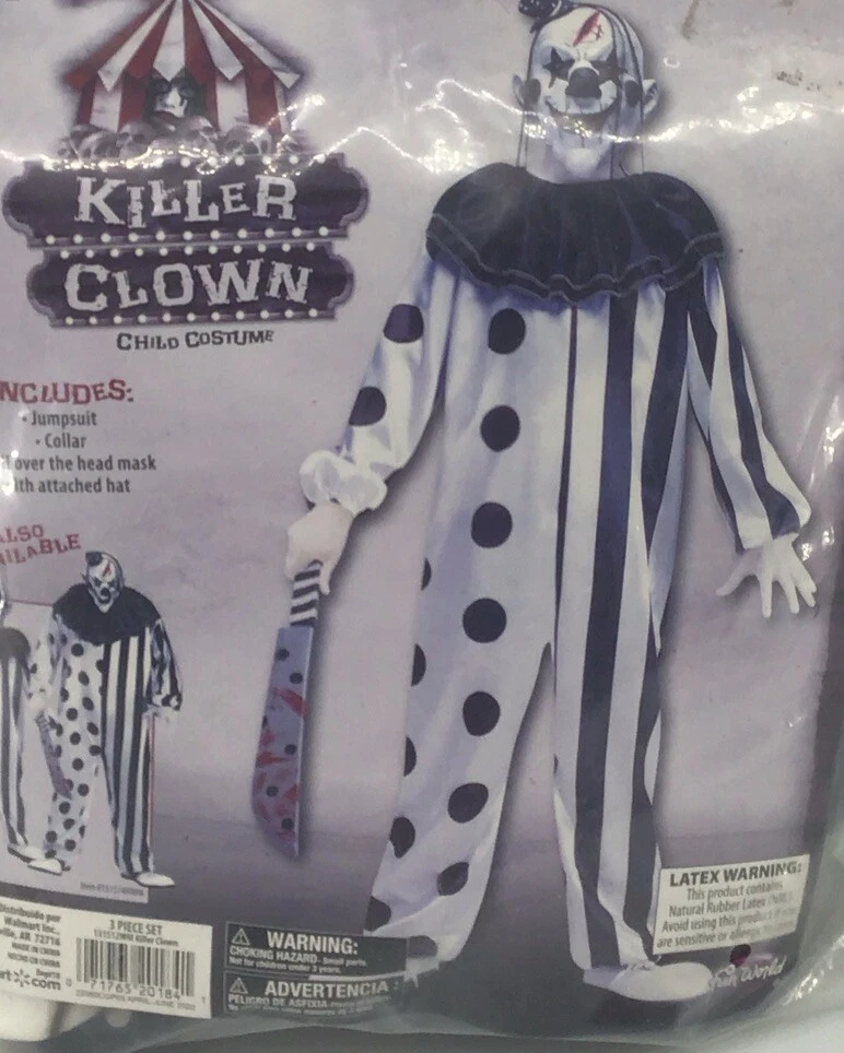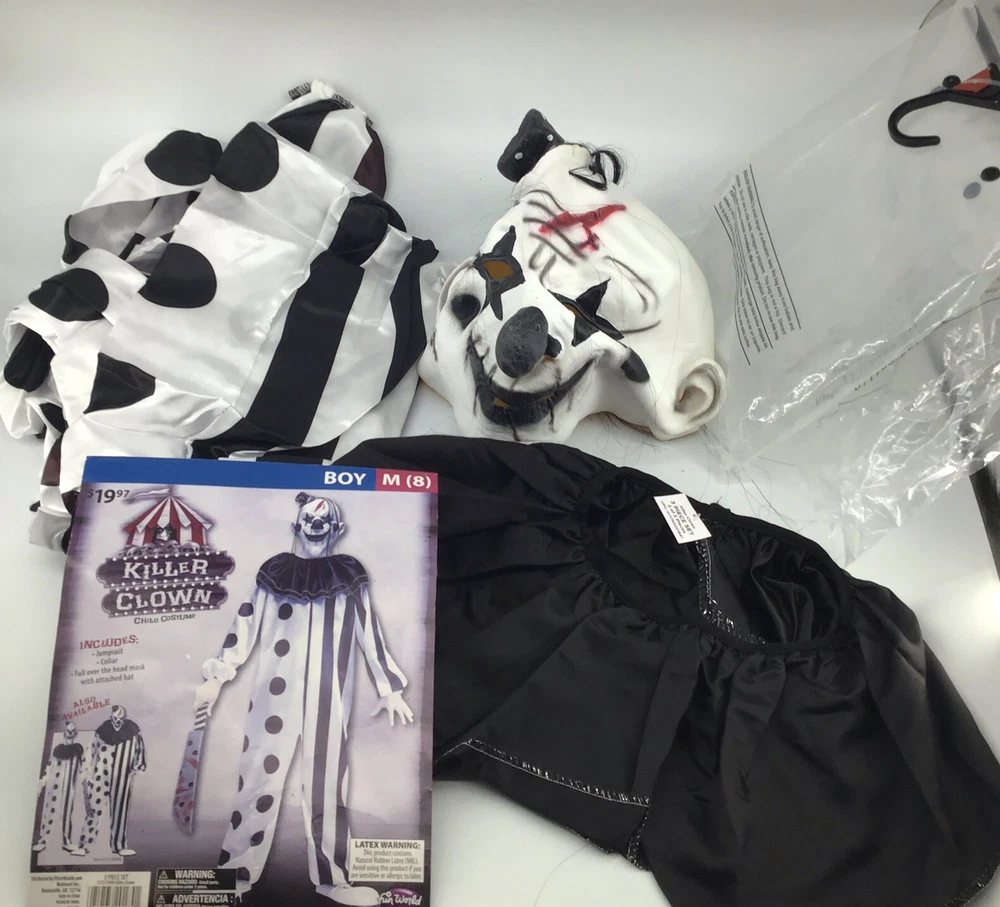 Get ready for a spooky Halloween with this Boys Killer Clown Halloween costume from Fun World. The complete outfit features a multi-colored synthetic material that is perfect for a horror-themed party. The size is medium (8) and is designed to fit comfortably for a fun and frightening look. The Killer Clown theme is sure to turn heads with its realistic and detailed design. Made in the United States, this costume is perfect for boys who want to make a statement at their Halloween party. So, get your hands on this Boys Killer Clown Halloween costume and terrify your friends with your outstanding appearance. Still has tags on outfit and mask New never worn