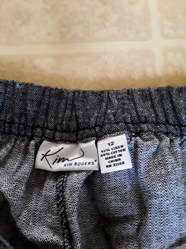 Kim Rogers Gray Woman Size 12 Linen Cotton Blend Pants Waist : 34" Inseam: 30" Rise: 11" Leg Opening : 9" Zipper: yes Buttons: 1 : AT Combined Shipment: USA : Highest item shipping cost + $3.00. for each subsequent item.Or, you can purchase as many items as you choose and pay the flat rate of $ for your Priority Mail Large Flat Rate Box which covers your entire order. Please read the disclaimer below. INTERNATIONAL SHIPMENTS: Highest item shipping cost [+ Item Weight.] for each subsequent item. Please read the disclaimer below. DISCLAIMER on Shipping Costs: Our intention is to keep our shipping costs as low as possible. However, depending on the item purchased (weight) and the destination, shipping rates can vary; especially 30 Day?s No Questions Asked Returns Policy: Your satisfaction is very important to us. We have a 30 days NO QUESTIONS ASKED returns policy. The item must be returned in the condition in which it was purchased. If there are labels/tags they should not be removed. If they are, the item will be sent back to you. ANY SHIPPING COSTS WILL NOT BE REFUNDED. BOTH WAYS, receiving and any returns. Please contact us for the return shipping address and authorization. ALL COMMUNICATIONS MUST BE IN WRITING & TAKE PLACE THROUGH THE EBAY SITE ONLY. No private direct email correspondence. A customer care rep. will respond to you within 24 hrs (Mon-Fri). Once we have received the merchandise and inspected it, please allow 72 hours for a refund to be issued. NO See my other listings for more great items! We accept PAYPAL. Also we have a virtual terminal with PayPal through which we can accept Visa, MasterCard, Amex, and Discover. If you do not have a PayPal account, it takes virtually minutes to open International shipments: PLEASE DO NOT PAY until we determine your shipping costs. Most of our items also have an International Flat-Rate. Although, if due to the destination or the weight we are unable to honor the rate mentioned in the item?s listing, we will cancel your order and leave you positive feedback. Usually we use the US Postal Service. The best international rate for an international shipment is First Class (up to 4 lbs.)If your items exceed 4 lbs. we may pack them into two separate packages (and notify you of this).You still are eligible to take advantage of the combined shipping rates, even if we have packed them into two separate packages. The fees for packaging, shipping, insurance, Customs Duty Charges on international shipments are all the responsibility of the Buyer and are not included in the purchase price. If the item(s) are gifts, we could indicate ?GIFT? on the customs form so you would avoid paying more on duty.