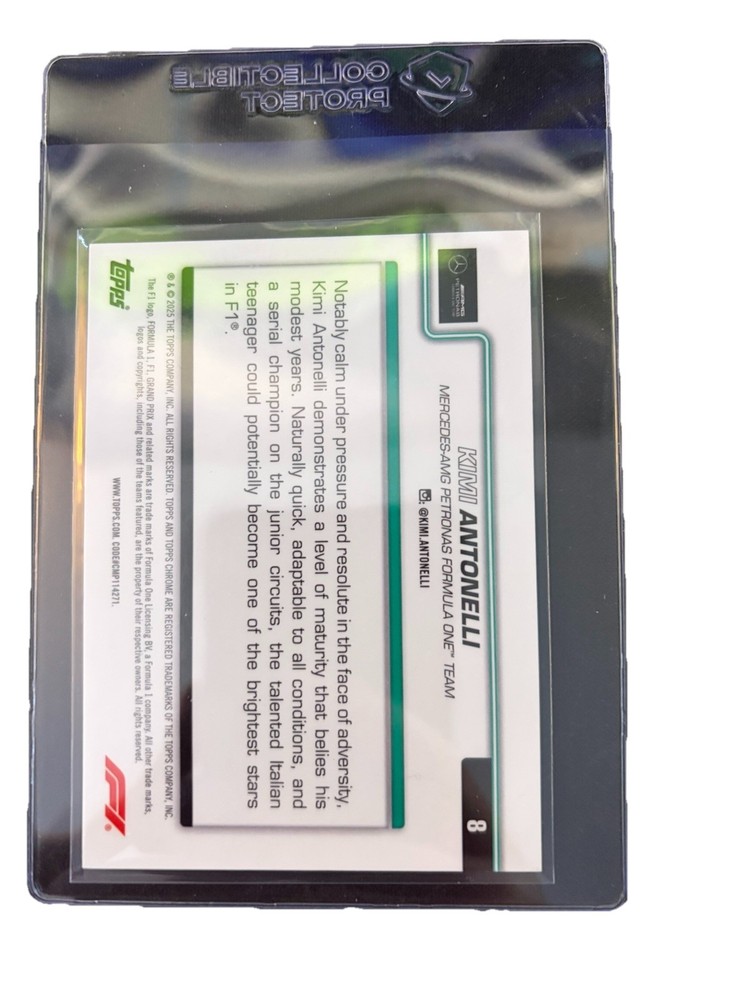 🔥 KIMI ANTONELLI ROOKIE /50 – MERCEDES AMG PETRONAS F1 🔥 Zum Verkauf steht eine seltene Rookie-Karte von Kimi Antonelli (Mercedes AMG Petronas Formula 1 Team) aus Topps Chrome F1. ✔️ Rookie Card (RC) ✔️ Limitiert auf nur 50 Exemplare (50/50) ✔️ Beliebter Chrome / Refractor Parallel ✔️ Top Prospect im Mercedes F1 Team 📈 Sehr starkes Investment-Potenzial Antonelli gilt als eines der größten Talente im Motorsport und zukünftiger F1-Star. 📦 Sicherer & versicherter Versand. 💬 Bei Fragen gerne melden. ⚠️ Kein Notverkauf – nur ernsthafte Angebote. Die Karte stammt aus meiner privaten Sammlung und wurde direkt nach dem Pull geschützt aufbewahrt. --- 🔥 KIMI ANTONELLI ROOKIE /50 – MERCEDES F1 🔥 For sale is a rare rookie card of Kimi Antonelli (Mercedes AMG Petronas F1 Team) from Topps Chrome. ✔️ Rookie Card (RC) ✔️ Limited to 50 copies (50/50) ✔️ Chrome refractor parallel ✔️ Top F1 prospect 📈 Huge upside potential. 📦 Secure & insured shipping. 💬 Feel free to message me. Serious offers only. Card comes from my personal collection and was stored safely right after pulling.