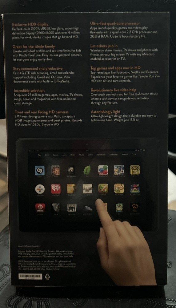 The Kindle Fire HD is a sleek and portable tablet with a 7-inch LCD display, perfect for reading ebooks or watching videos. With 8GB of storage capacity, you can store a large number of books or media files. The device is equipped with Wi-Fi internet connectivity and a touch screen feature for easy navigation. With a battery run time of 6 hours, you can enjoy extended reading sessions without worrying about running out of power. The black color and Amazon branding give it a modern and recognizable look, making it a great choice for technology enthusiasts and bookworms alike.