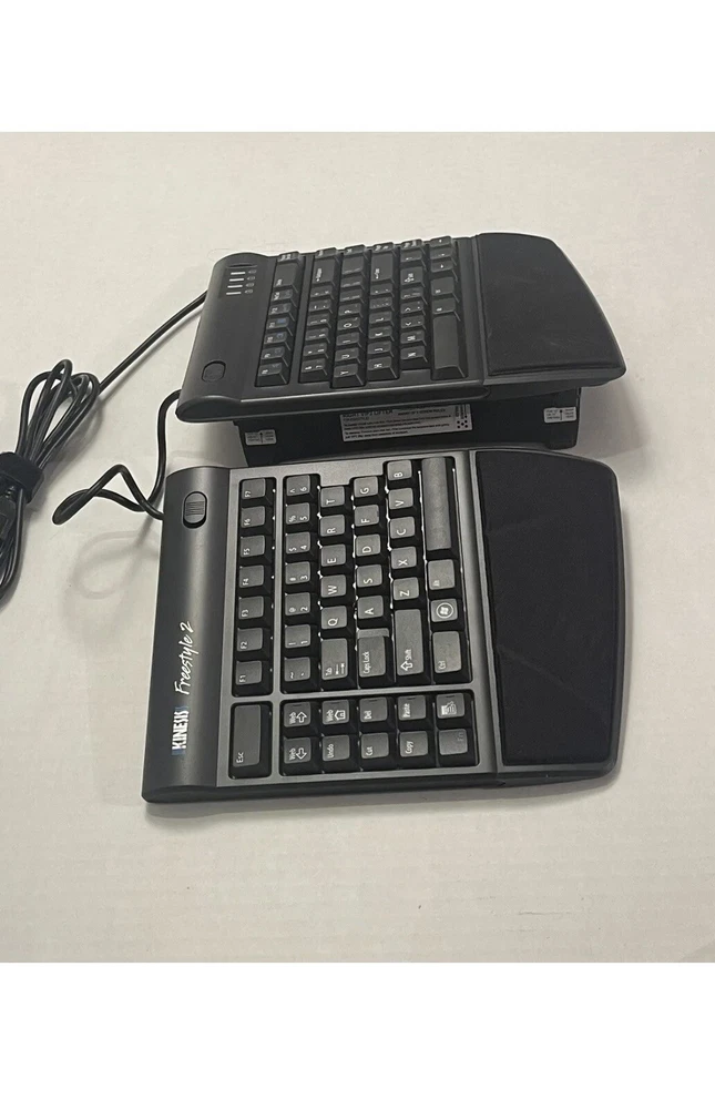 Kinesis Freestyle 2 Ergonomic Split Keyboard KB800, Keyboard Lifts, Wrist Rests & Num Keypad AC800H. Tested and functioning. The keyboard might have scratches, nicks and /or blemishes from normal daily usage but overall is it in good condition cosmetically. Keyboard is used and have been cleaned and tested. Shipping: All Items will be shipped through UPS or FedEx Ground within 1 business day, excluding weekends and holidays. Shipping to lower 48 lower states only. RETURN POLICY: Returns accepted within 30 days of purchase. We ask that if you do decide to return the item, please return it in the same condition as it was received. All returns will be verified through eBay in order to protect the buyer and the seller before getting refunded. Please CONTACT US before requesting a return, so we can proceed with the best possible customer service.