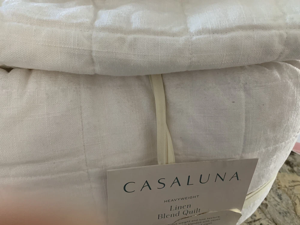 King Heavyweight Linen Blend Quilt - Casaluna+2 king Shams ,( shams without tag new)white color quilt New has some dust marks being on shelf can be washed easily