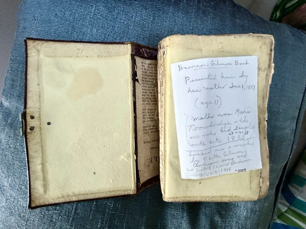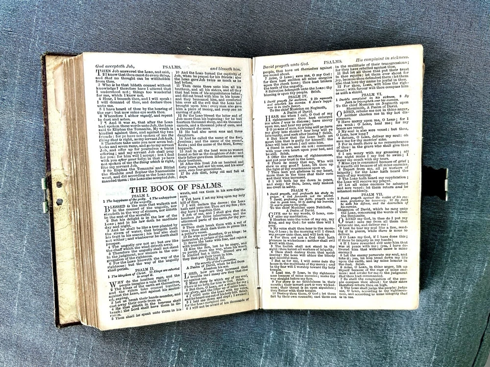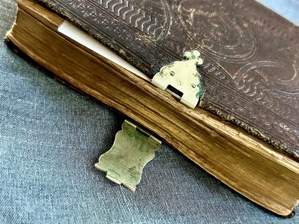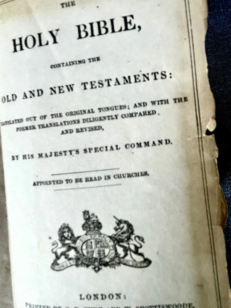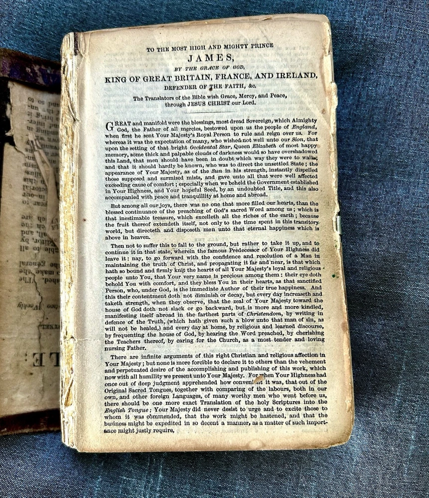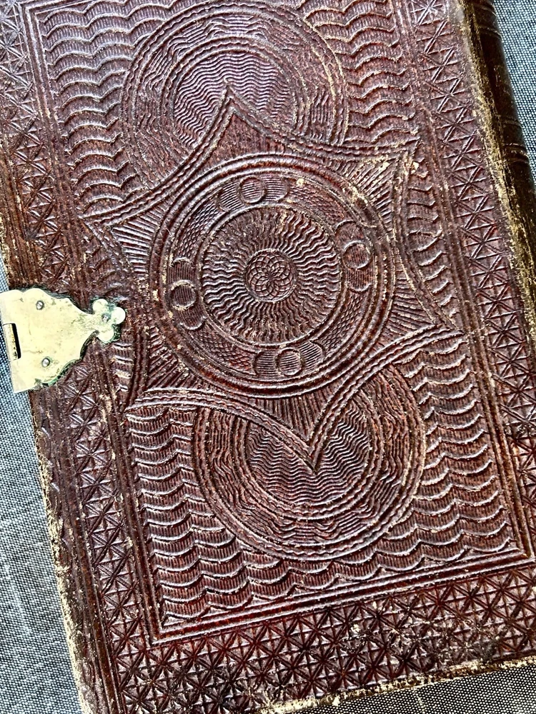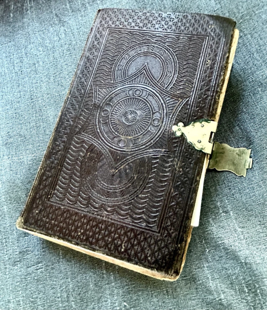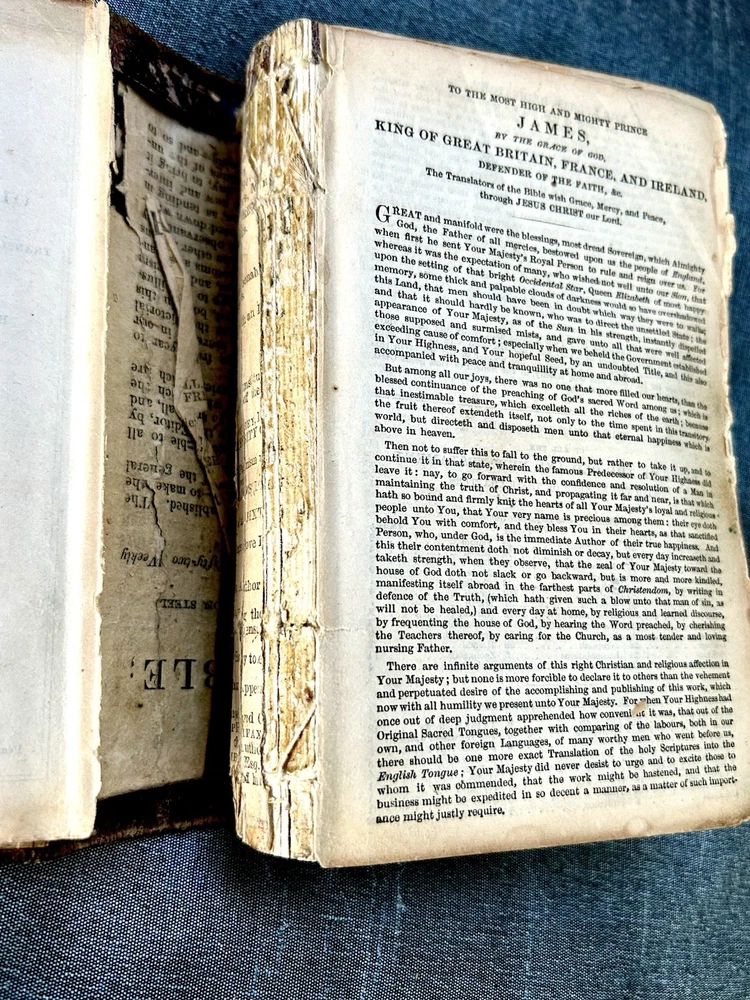 175 Year Old Rare Antiquarian Copy - The hand written note states that the bible was presented as a gift in 1851. The Roman Numeral published date dates this bible to 1850. This bible is about 3.5" x 5.5", the gilt edging has worn away, the hand tooled leather covers are beautifully crafted and the hinge closure works fine. The first two pages are loose, the binding is intact but the original glue to hold it into place has also worn away as shown. I have not found another example of this particular style, age and size. Rare. King James Version Bible, By His Majesty’s Special Command, London, Printed by George E. Eyre and William Spottiswoode For the British and Foreign Bible Society