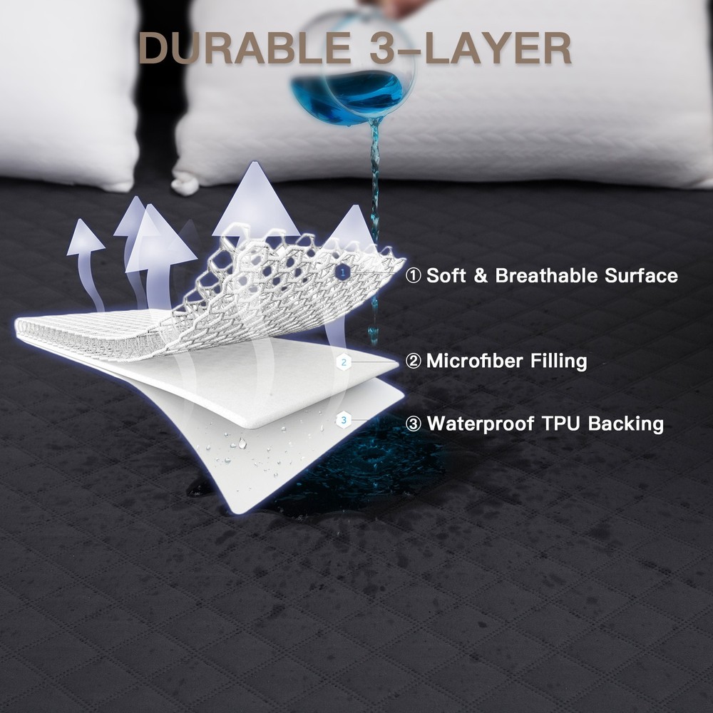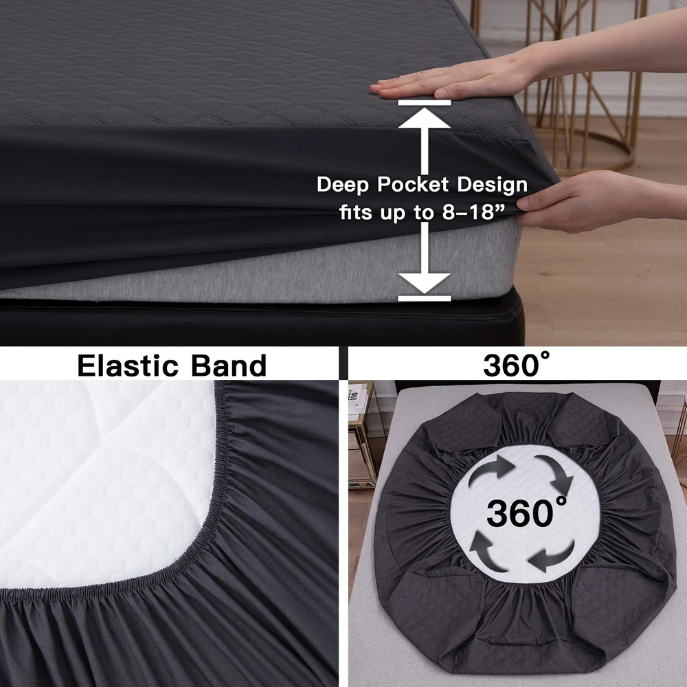 King Queen Full Twin Size Waterproof Mattress Protector Quilted Fitted Cover Specifications: Material: Top Fabric:Polyester coating TPU+ Quilting Cotton Skirt Fabric:100% Polyester Color: White Size: Twin 39x75x18in Full 54x75x18in Queen 60x80x18in King 76x80x18in Package Includes: 1pc Mattress Protector (No other things) Features: The mattress cover is made of high quality microfiber for extra softness and breathability. TPU waterproof layer effectively prevents sweat, body fluids, urine, and other accidental spills. 360° Elastic band design, fits mattresses up to 18in deep, keeping mattress stay in place and not slide off. Suitable for people with children, toddlers or pets. Protect the top of the mattress from liquids and stains. Machine washable, tumble dry on low, do not iron, do not dry clean, do not bleach. Note: Please allow a 1-3 cm difference due to manual measurement. Due to the different displays and different lights, the picture may not show the actual color of the item. Waterproof Barrier The mattress protector is designed with waterproof TPU layer on the back that can effectively protects your mattress from fluids, perspiration, drink, etc. Breathable The quilted filling of bed mattress protector allows air to circulate freely, increasing the softness and breathability, and also improving the water absorption. Premium Fabric Made of soft polyester fabric with diamond quilted pattern, the mattress cover adds breathable and comfortable feeling. Deep Pocket The waterproof mattress cover adopts deep pocket design, fits mattresses from 8 inches to 18 inches. 360° Full Surrounding The 360° elastic band around the bottom helps to keep the mattress pad stay in place, avoiding shifting and giving the mattress all-around protection. Care Instructions Hand wash or machine wash. Tumble dry low. Please do not dry clean. Do not iron and do not bleach. Meet Different Needs