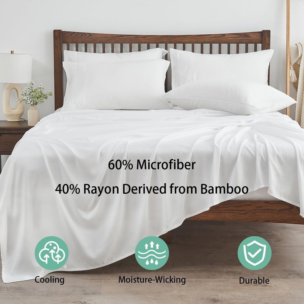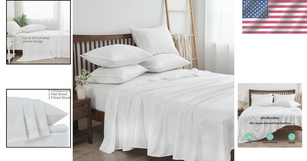 King Sheet Set Rayon Bamboo 6pcs Cooling Breathable Deep Pocket Hotel Linen ‹ › ‹ › ‹ › ‹ › ‹ › ‹ › ‹ › ‹ › ‹ › King Sheet Set - Rayon Bamboo 6pcs Cooling, Breathable, Deep Pocket Hotel Linen Indulge in Luxury Sleep Elevate your bedtime experience with our ultra-soft King Sheet Set, made from a blend of 40% rayon derived from bamboo and 60% microfiber. Each set comes with four exquisite embroidered envelope-style pillowcases, adding elegance and sophistication to your bedroom décor. Stay Cool and Comfortable Sweaty nights are a thing of the past! This sheet set features breathable fabric that wicks away moisture and enhances airflow, ensuring you stay cool. Our wrinkle-resistant and pill-resistant design guarantees long-lasting durability and keeps your linens looking pristine. Perfect Fit Every Time Enjoy a snug and secure fit with our deep-pocket design, accommodating mattresses up to 16 inches. Rest easy knowing your sheets will stay in place all night, providing uninterrupted sleep and ultimate comfort. Comfort Meets Convenience Designed for all ages, our sheet set is easy to care for; simply toss them in the washing machine for a gentle cycle. Experience fresh linens without the hassle and enjoy luxurious comfort at your fingertips. Complete Bedding Solution Transform your bedroom into a haven with our comprehensive King Sheet Set. Includes one flat sheet (108”x 102”), one fitted sheet (80”x 78”), and four pillowcases (20”x 40”), providing everything you need for a restful night. Your comfort is our top priority, ensuring you experience the perfect sleep every time. Why Choose Our King Sheet Set? Discover the perfect blend of luxury and practicality with our King Sheet Set. Not only does it enhance your sleeping experience with elegant softness, but it also provides cooling properties to keep you comfortable all night long. Invest in your sleep today and transform the way you rest! Shipping Free & Fast Shipping - We offer free shipping to most of the USA with a normal delivery time of 3-7 days. However, due to the current situation, additional delivery time (up to 3 weeks) may be required for some items. Alternative Carriers - We may use alternative carriers (e.g. USPS, FedEx, UPS, etc.) to ensure your package arrives safely and on time. Due to the use of multiple carriers, we are unable to provide a tracking number automatically. Handling Time - Orders are processed and shipped within 1-2 business days of receiving cleared payment. Shipping Restrictions - Shipping to Alaska, Hawaii, Puerto Rico, Guam, and other US territories may incur shipping charges or delivery restrictions. Please contact us before ordering, or your order can be refunded/cancelled. State Restrictions - There may be restrictions based on your state of purchase. For example, certain items may not be shipped to California due to state regulations. Contact for Tracking Updates - If you require tracking updates or have any concerns about the delivery of your order, please feel free to contact us, and we will be happy to assist you. Return 30-Day Hassle-Free Returns - We want you to be completely satisfied with your purchase. If you are not, you can return the item within 30 days of receiving it for a full refund or exchange. Easy Return Process - To start a return, simply contact us and we will provide you with a prepaid return shipping label and detailed instructions. Restocking Fee - There are no restocking fees for returns. However, the buyer is responsible for return shipping costs if the return is not due to a seller's error. Refund Processing Time - Refunds will be processed within 5 business days of receiving the returned item in its condition. Payment We accept all major credit cards, PayPal, and Apple Pay for your convenience. Your payment information is secure and encrypted to ensure a safe and seamless transaction. Please complete your payment within 3 days of purchase to avoid any delays in shipping. Feedback Your feedback is extremely important to us. We strive to provide the best products and customer service possible. If you are satisfied with your purchase, please take a moment to leave us a positive review. If you have any concerns or issues with your order, please contact us before leaving negative feedback. We are committed to resolving any problems and ensuring your satisfaction. Contact Us If you have any questions or concerns, please feel free to out to our customer support team. You can contact us through the eBay messaging system. We are available Monday to Friday, 9:00 am to 5:00 pm EST, and we will do our best to respond to your inquiry within 24 hours. Buy it now and enjoy a pleasant shopping experience! Unit Quantity: 1 Material: Microfiber,Rayon Features: Breathable,Cooling,Deep Fitted,Embroidered,Wrinkle Resistant,Pill Resistant Care Instructions: Machine Wash Department: Unisex Baby & Toddler,Kids,Teens,Adults Room: Bedroom Size: King Type: Sheet Set Color: White Pattern: Solid Thread Count: 200 or Less Style: Luxury Shape: Rectangular Unit Type: Unit