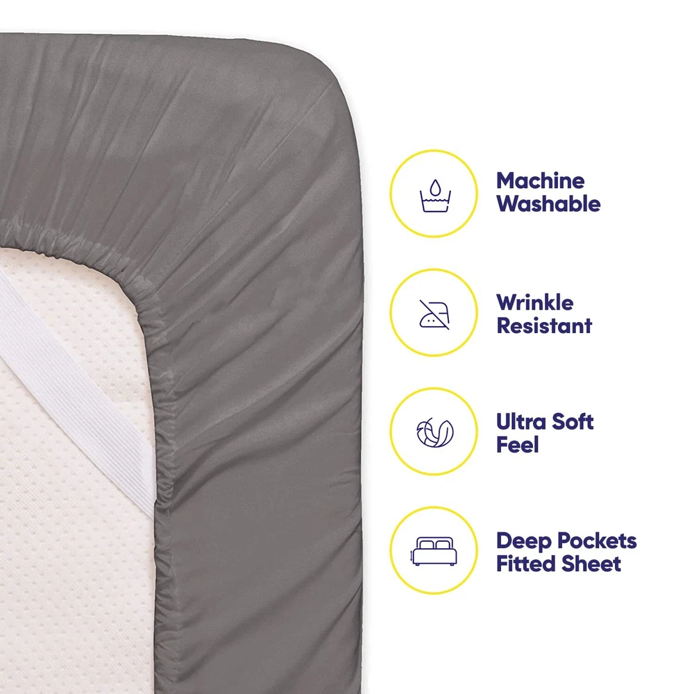 Transform your bedroom into a sanctuary of comfort and style with our luxurious 6-piece bed sheet set, meticulously crafted to provide the ultimate sleeping experience. Made from premium quality microfiber fabric, these sheets boast an irresistibly soft texture that will envelop you in pure bliss as you drift off to sleep. Say goodbye to rough, scratchy bedding and hello to the indulgent embrace of our sumptuous sheets, designed to pamper you with every touch. Whether you're curling up with a good book or drifting off into dreamland, our bed sheet set promises unparalleled comfort and relaxation, night after night. Experience the difference of a secure and snug fit with our innovative built-in sheet straps, ensuring that your sheets stay in place throughout the night. No more waking up to find your sheets bunched up at the foot of the bed or slipping off the corners. Our sheet straps are designed to provide maximum grip and stability, so you can enjoy uninterrupted sleep without the hassle of constantly readjusting your bedding. With our bed sheet set, you can rest easy knowing that your sheets will stay securely in place, even if you toss and turn during the night. Say goodbye to restless nights and hello to a peaceful and restorative sleep experience. Add a touch of personality to your bedroom with our wide selection of over 40 captivating colors and prints. Whether you prefer classic neutrals, bold hues, or eye-catching patterns, we have the perfect option to complement any decor style or personal taste. Mix and match different colors and prints to create your own unique bedding ensemble that reflects your individual style and personality. Elevate the aesthetic appeal of your bedroom and make a statement with our stylish and versatile bed sheet set. With so many options to choose from, the possibilities are endless. Each set includes a flat sheet, fitted sheet, and four pillowcases (except for twin and twin XL sizes, which come with two pillowcases), providing everything you need for a complete bedding ensemble. Our bed sheet set takes the guesswork out of styling your bed, offering a convenient and coordinated solution that is both functional and fashionable. Enjoy the convenience of a fully coordinated bedding look that exudes sophistication and elegance. Treat yourself to the luxury of premium quality bedding that offers both style and comfort in one convenient package. Experience the ultimate in comfort and style with our luxurious 6-piece bed sheet set. VALUE PACK: Our 6 PIECE Sheet set includes 2 more pillowcases than the inry standard 4-Piece Sheet set. SUPERB SHEET SET – Treat yourself to a matching sheet set for any and all of your bedrooms! Each luxurious sheet set contains 1 fitted sheet, 1 flat sheet, and 2 standard pillowcases. Finding a terrific basic sheet set on at a terrific value just become easier. This sheet set is a great gift idea for men, women, mothers, fathers, children, college students, all ages and for holidays, Christmas, Mother's, Father's, Valentine's Day, birthdays, special occasions. Surprise your friends and family with these elegant and durable sheets. PERFECT FIT FOR ANY BED – Sleep soundly for years to come! Your deep pocket sheets are fade, shrink, and avoid wrinkle . No matter if you need toddler bedding sets for boys, full size sheets for your teen, or queen and king size sheet for yourself, we’ve got you (and your bed) covered. SLEEP TIGHT SATISFACTION GUARANTEE – Get a good night’s sleep knowing your affordable bedroom decor also comes with access to top-notch customer service! 6 PIECE SET VALUE PACK: Our 6 Piece Sheet set includes 2 more pillowcases than the industry standard 4-Piece Sheet set. Following requests from customers we have added 2 Pillowcases prepacked with a 4 Piece Sheet resulting in more than a 50% SAVING on additional pillowcases that would normally be sold separately. Add style, comfort and luxury to your bedroom with these sheet sets. They promote the great night's sleep you've been looking for, making every morning a refreshing one. These sheets look/feel good at home, vacation, kid's room, guest room, college dorm. Our goal is to figure out how we can provide more savings and more quality to our customers. KING SIZE LUXURY BED SHEET SET MEASUREMENTS: 1 Flat (102"x105") 1 Fitted (78"x80") and 4 King Pillowcases (20"x40") w/ deep pockets that fit mattresses up to 16" deep with elastic around the fitted sheet. These sheets grip and fit better than any other sheet set! Bed sheet set is designed to fit nearly all mattresses with a depth that does not exceed 16". With added stretch and durable elastic the fitted sheet is designed to stay snug and fitted to your mattress. Use the pouch on the inner flap of the pillowcases to hold pillows inside while hiding the pillow as well. Finding a terrific basic sheet set on Amazon at a terrific value just become easier. This sheet set is a great gift idea for men, women, mothers, fathers, children, college students, all ages and for holidays, Christmas, Mother's, Father's, Valentine's Day, birthdays, special occasions. Surprise your friends and family with these elegant and durable sheets. Order our sheet set and share your feedback. We are constantly listening and monitoring our customer feedback. Egyptian Quality sheets at a great value! These 6 piece sets exceed comfort expectations, and are at a lower price than other sheet sets. Get more bang for your buck. Our 6 piece sets provide more value and flair than all the rest. We encourage customers to reach out and contact the brand regarding your experience. We want you to be 100% satisfied with your purchase and we pride ourselves on offering the best customer service in the business. Whether you’re calling with a simple question or telling us about your experience with one of our products, we strive to give each and every customer a personal experience. Care Instructions: Machine wash in cold water with similar colors. Tumb