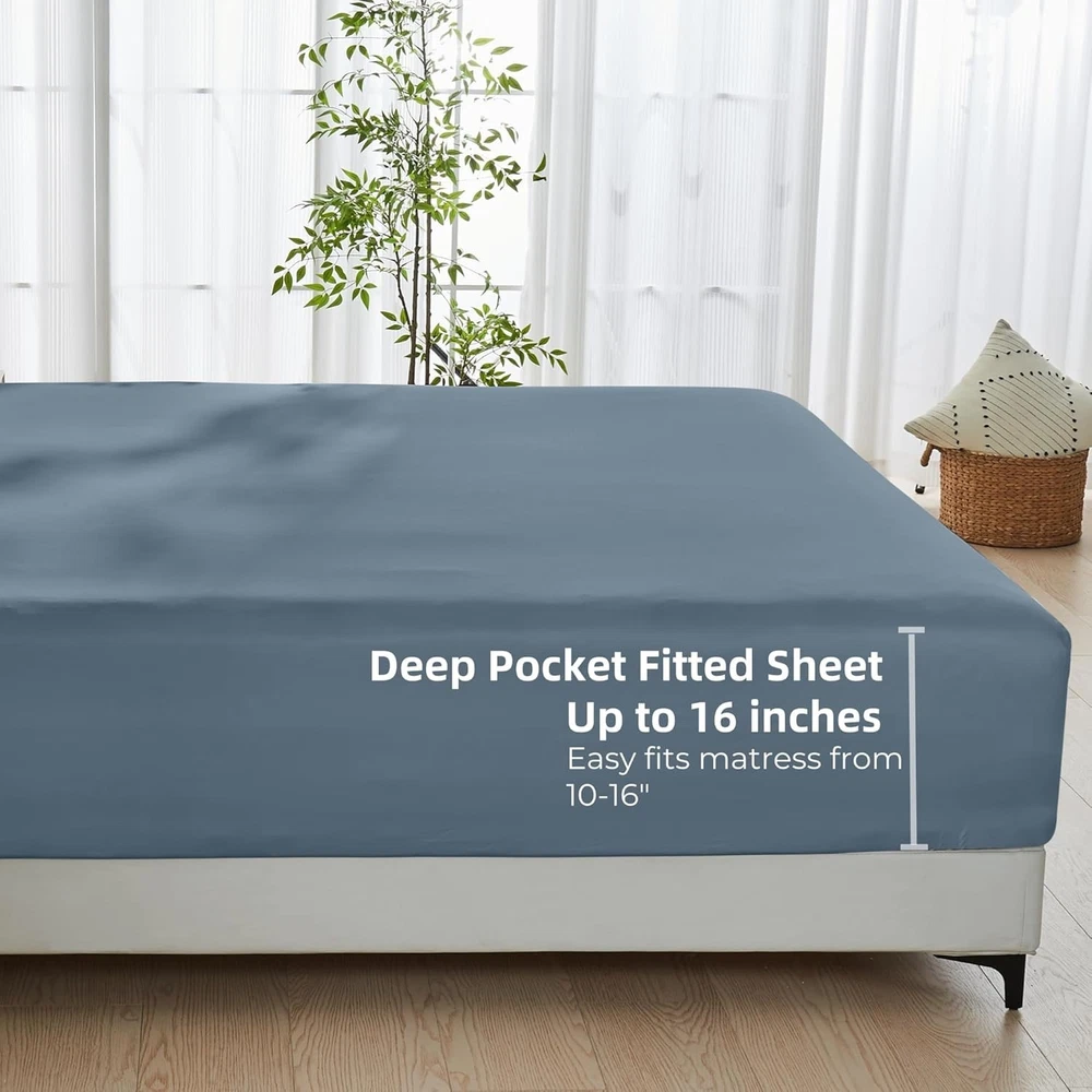 100% Organic Bamboo Queen Sheet Set - Moisture-Wicking with 16-Inch Deep Pockets