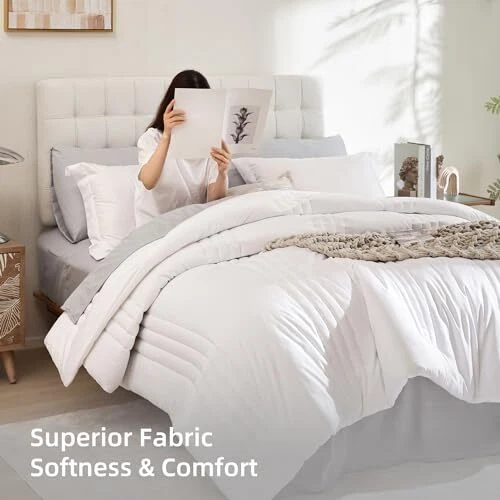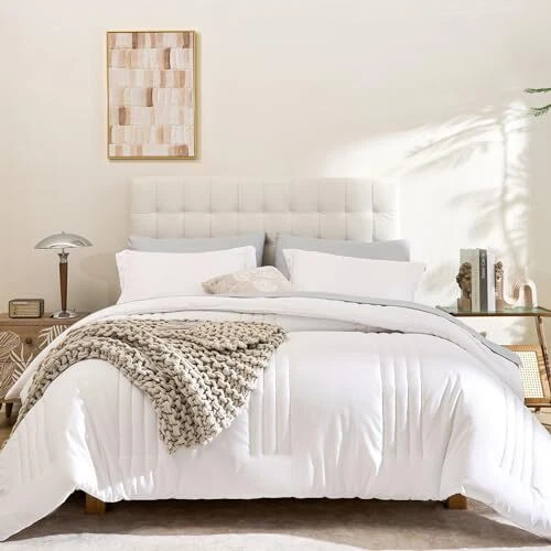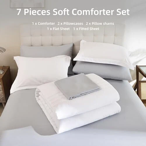 Theme: Contemporary Style: Contemporary Included Components: 1 Comforter, 1 Flat Sheet, 1 Fitted Sheet, 2 Pillow Cases, 2 Pill Item Length: 16.93 UPC: Does Not Apply Manufacturer: Does Not Apply Fabric Type: Microfiber Material: Microfiber Date First Available: March 26, 2024 Number of Pieces: 7 MPN: Does Not Apply Package Dimensions: 16.93 x 12.17 x 7.28 inches Color: White gtin13: Does Not Apply Product Care Instructions: Machine Wash Country of Origin: China Item Width: 12.17 EAN: Does Not Apply Item Weight: 10.19 pounds Seasons: All, Winter, Summer, Spring Item Height: 7.28 Pattern: Solid Type: Does Not Apply Brand: Does Not Apply Size: 7 Piece-King (104X90'')