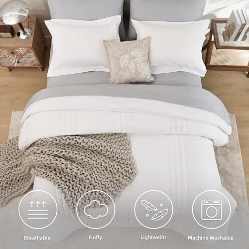 King Size Comforter Set 7 Pieces, White King Bedding Set with Vertical