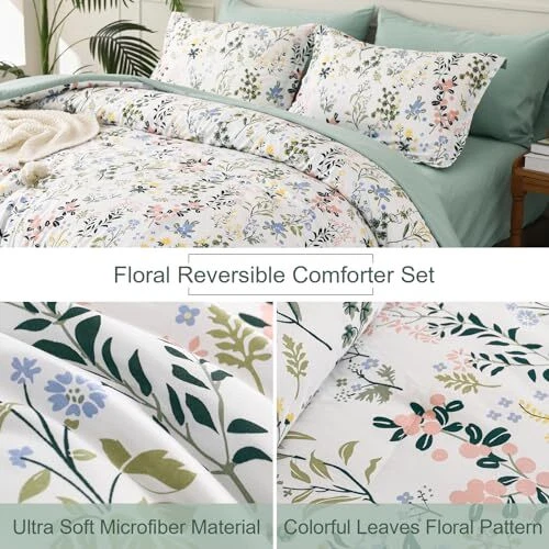 King Size Comforter Set,7 Pieces Floral Leaves King90"x103" Colorful Floral