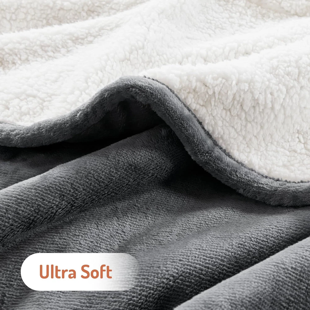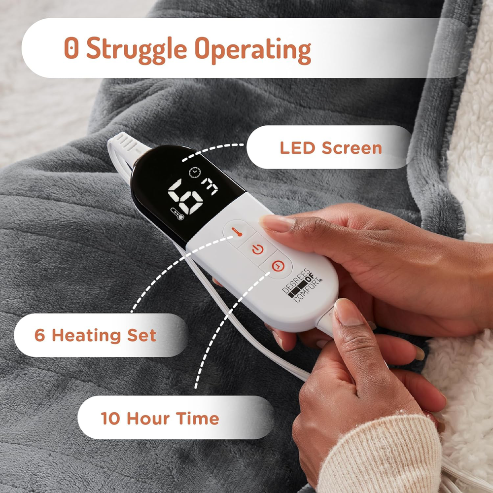 King Size Heated Blanket 100x90 Inch Sherpa Flannel Dual-Sided with 6 Adjustable Heat Settings