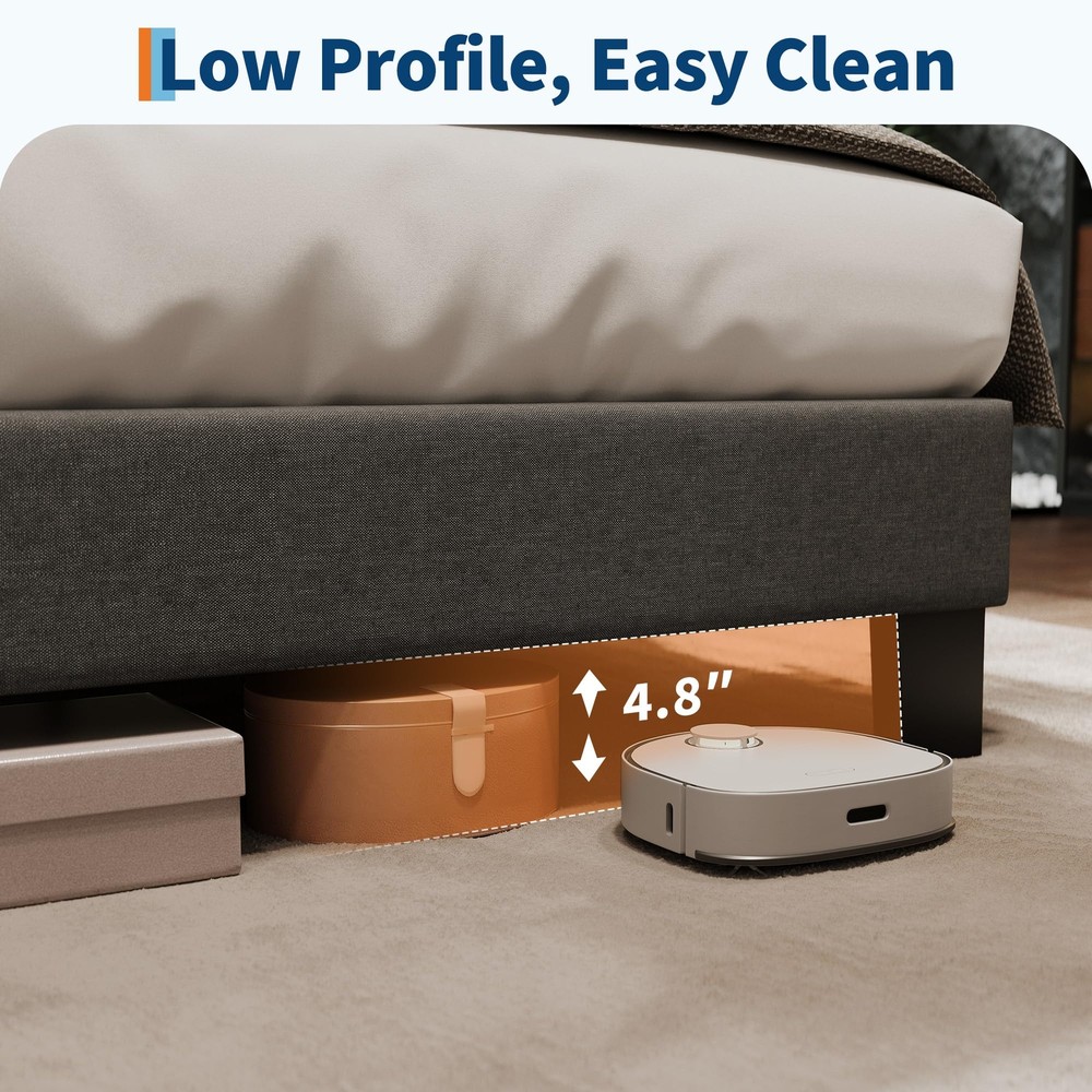 About this item Stylish & Comfortable: King size bed frame features linen upholstered headboard adds elegance and sophistication to your bedroom. High-quality and affordable headboard that looks great and provides excellent support and providing a comfortable backrest for reading or watching TV. Adjustable Headboard: The king bed frame with headboard can be adjusted from 43.7'' to 45.7'' giving you the flexibility to create the perfect sleeping environment for your need. The linen fabric upholstery is designed to be both stain-resistant and wear-resistant. Sturdiness & Noise-Free: Extra-thick heavy-duty feet that provide a stable base and superior stability and support without any wobbling or shaking. Can support up to 1000 pounds of weight. The Eva mute bar prevents noise from friction,ensuring a quiet, shake-free sleep without squeaks or creaks. Wooden Slats & No Box Spring Needed: Design with Veclro wooden slats for fast assembly also the mattress doesn’t slide around on it. Provide the excellent support for your mattress and durability. Memory foam or spring mattress without the need for a box spring. Most important thing to note is support your mattress and prevent it from sagging or shifting. Quick Assembly: The king bed frame with headboard with headboard ships in one box and is easy to follow the simple assembly instruction with no special tools required. The process is straightforward and hassle-free, you can set it up in no time. Product Description Previous page Next page Adjustable Headboard 4.8'' Under Bed Space 4.8'' for Storage Space Previous page Next page Soft Touch Headboard Headboard & Feet Veclo & EVA Bar Special Feature Adjustable Headboard Adjusted From 43.7'' to 45.7'' Veclo Design for Quicken Install Wood Slats The Mattress Doesn’t Slide Around on It Heavy Duty Feet Max. Capacity 1000 Lbs Payment Delivery details Terms of sales About us Contact us Payment We accept payment either via PayPal or any of the following credit cards; Visa, MasterCard, Discover, and American Express. Delivery details 1. We will delivery out at the handing time when we receive the payment. 2. The delivery time is 3-5 business days to US by usually time.The parcel maybe delay 1-2day of the weekend.Due to the bad weather,Holidays,Hot Season ect.the parcel maybe delay,If you have any problems,mssage us,we will try our best to solve it. 3. We ship to your eBay address. Please make sure your eBay address is correct before you pay. 4. If you want to change the shipping address,message us before our send out. Terms of sales If you are not satisfied with the item for any reason, please do not quick to leave negative/neutral feedback even open request and case without any communication with us. We devote ourselves making EVERY CUSTOMER in 100% Satisfactory and resolve any problem. Thank you for your understanding and recognition,we are always leave positive feedback to all our customers. About Reply: All replies will be sent to your email box, if you do not get response within 24 hours (Sat. & Sun. excluded) please check your eBay My Messages in case that our emails will be filtered automatically by your settings. About us automobilee-01 is a brand new store but we are one of North America’s top online suppliers of specialized, high-quality aftermarket online retailers and suppliers, committed to developing new markets. We primarily offers tool sets, auto parts, home goods, etc..With over 20 years of product selection and manufacturing experience, we delivers unparalleled quality, value, service and satisfaction. Our highly-trained, professional staff offer in-depth knowledge and personalized assistance for customers worldwide. Providing our customers with a simple, hassle-free experience with best-in-class customer service is more than a goal. Contact us Any problem please rest assure to contact us by eBay message first. We will reply you as soon as we can. We will deal with it within 24hs on working days. Brand Unbranded Compatible Mattress Size King Frame Material Wood, Metal, Fabric Type Bed Frame Features Adjustable Headboard, Durable Color Gray Mattress Included No Assembly Required Yes Style Contemporary/Modern Shape Rectangular MPN Does not apply Care Instructions Easy Care Room Bedroom Country/Region of Manufacture China Item Length 82.7'' Item Width 80'' Item Height 45.7'' Department Adults Footboard Height 8.6'' Product Dimensions 82.7"L x 80"W x 45.7"H Upholstery Fabric Fabric Manufacturer Warranty 5 Years