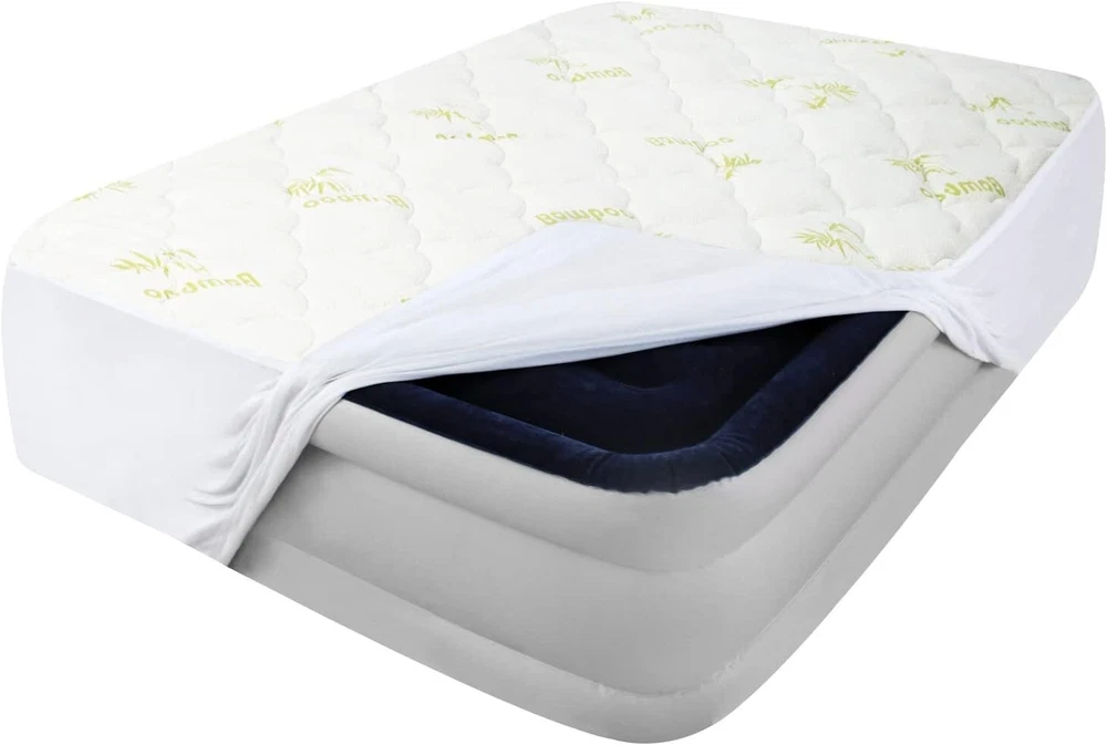 King Size Air Mattress Topper Cover, Thick Quilted Mattress Topper King, Viscose Made from Bamboo Pillow Top King Mattress Pad with Deep Pocket Fits Up to 23 Inch Mattress Imported. Breathable and Soft: Premium breathable viscose made from bamboo top fabric of the king size air mattress cover provides softness touch feeling, can balance the body temperature with the temperature produced by the down alternative filling, increases temperature circulation and breathability, allow you to stay comfortable throughout the night. Comfortale and Noiseless: Our king size air mattress topper is filled with elastic and hollown down alternative fiber. The material is soft, comfortable and breathable. And the mattress pad bottom layer use soft microfiber fabric, that won't make any crinkling sounds. Durable and Protection: Our king mattress cover is durable and long lasting and is significant for keeping your mattress free of damage, stains, sweat, skin oils, and will protect you as well, keep your mattress clean and extend it longer would be more fluffy after releasing from the Vacuum Package in a few days) Deep Pocket: Our king mattress pad is fitted sheet style with deep pocket, perfectly fits the king mattress (76 x 80 inches), the skirt stretches up to fit at least 23 inches deep mattress. Fully protect your mattress all around. Snug fit and more stretch for easy on or off. Satisfaction Promise: products are Oeko-Tex Standard 100 certified to be free of harmful chemicals. So the deep pocket pillow top mattress topper king quality you can trust so you can buy at ease. And if you have any questions, please contact. Our customer service staff will reply you within 24 hours. Bedding Why Choose Pillow Top Bamboo Cooling air Mattress Topper? Are you still worrying about finding a suitable cooling pillow top air mattress pad? We are here, we are specialized in home textile as a manufacturer for more than ten s. Our aim is to provide high quality products with reasonable cost for our customers. Our cooling air mattress topper information: Unique Design: Cloud pattern padding is designed to provide your body with soft support like a cloud. Top Fabric: Sikily soft and breathable bamboo rayon. Filling: Extra plush overfilled into. Fitted Sheet Style Design: Tight-fitting elastic strip can ensures the bamboo air mattress topper stays in place, the extra deep pocket skirt stretches up to fit 16-23 inches deep mattress. Easy Care and Washable: Our pillow top air mattress topper is durable and long lasting. Machine washable and tumble dry on low heat for best result. cooling air mattress bed topper, for your deeply needs!