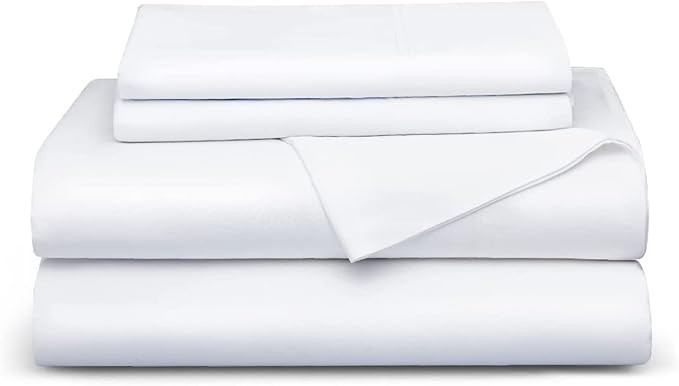 King Size Sheet Set, Cooling Sheets, Rayon Derived from Bamboo, Deep Pocket Up to 16", Breathable & Soft, Bed Sheets, Hotel Luxury Silky Bedding for Hot Sleepers, White' Description: AWARD-WINNING COOLING: Made from rayon derived from bamboo, these cooling sheets reign supreme in breathability and moisture-wicking, and are endorsed by Forbes Vetted, NBC, and The New York Post. Banish sticky nights and enjoy cool, cozy slumbers 100% RAYON DERIVED FROM BAMBOO: Crafted from nature’s embrace, the sheet set is completely free of harmful chemicals, cool to the touch, and silky soft without irritating your skin. It proudly passes the OEKO-TEX Standard 100 certification(24.HCN.19195) IDEAL SLEEP COMPANION: Made from 100% rayon derived from bamboo, these bed sheets offer a cool, silky-soft feel. Perfect for hot sleepers, menopausal women, or babies. Available in a range of colors to match your style EASY FIT: Our fitted sheet fits mattresses up to 16" thick. The 360° elastic band ensures a secure fit, eliminating endless fussing. Plus, the envelope-closure pillowcases protect pillows from slipping out EASY CARE: Machine wash in cold water (below 104℉) and tumble dry low. Remove promptly or iron if needed to reduce wrinkles. For stains, pre-treat with laundry detergent instantly before washing. Do not bleach or dry clean to preserve fabric quality