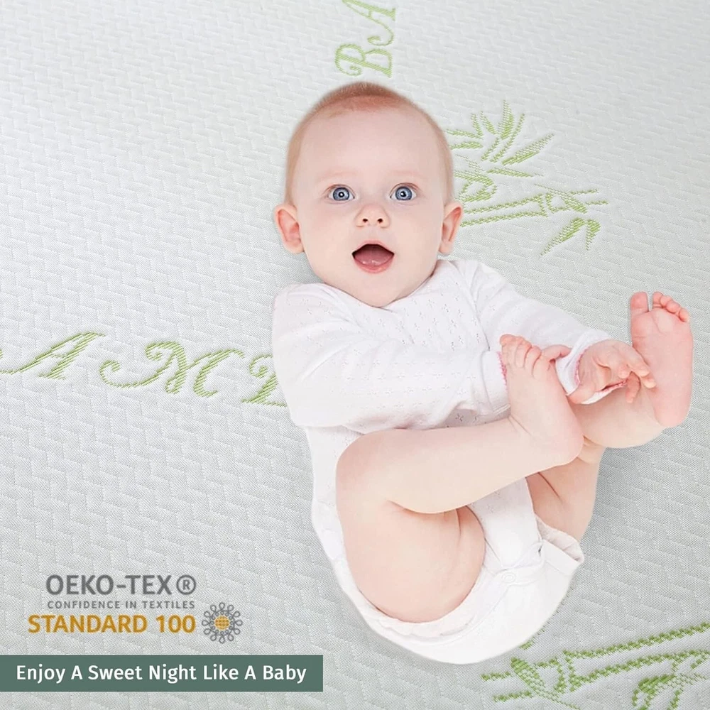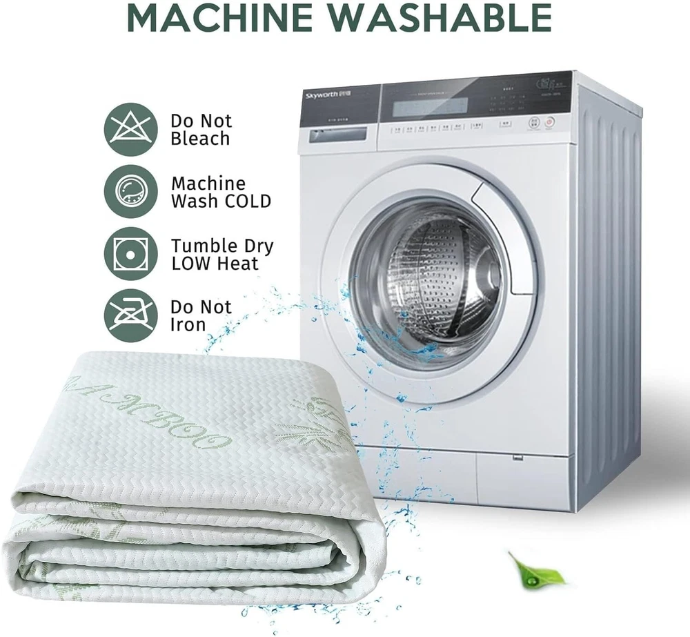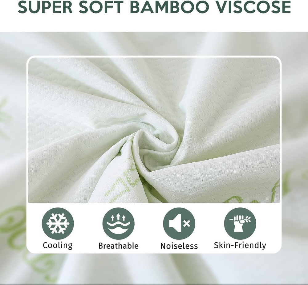 King Mattress Protector, 100% Waterproof King Size Mattress Cover Protector, Cooling and Breathable Mattress Pad Cover, Deep Pocket 8"-21" 【BREATHABLE MATERIAL】Our mattress protector is made of 40% rayon made from bamboo and 60% polyester. This mattress protector provides a comfortably cool and soft touch and evenly distributes heat for an optimal sleeping experience at night. 【NO WORRY TO GET WET】This mattress protector is made of advanced grape-quiet TPU waterproof membrane, which is upgraded to better protect your mattress from any liquid penetration. It can perfectly protect your expensive mattress from sweat, allergens, accidental spills, body fluids such as sweat or urine. Keeps your bed dry and stain free. 【SLEEP IN SILENCE】Our mattress cover is so soft that you won't see wrinkles in the cover, and the fine bamboo made from viscose construction ensures that there is no rattling of the plastic material when you move on it. Enjoy a silent rest and provide you with a restful sleep. 【STRETCHABLE POCKETS】Our deep pocket design contains memory foam, latex and springs and fits all 8"-21" mattresses. The stretchable pockets are super easy to put on and adjust, ensuring that the mattress protector stays in place and doesn't slip or bind. Your mattress will be completely covered. 【EASY CARE】The mattress protector can be machine washed and dried at low temperature. Follow any specific wash care instructions on the bleach-free detergent. Bleach could damage its waterproof it on an average of every once a