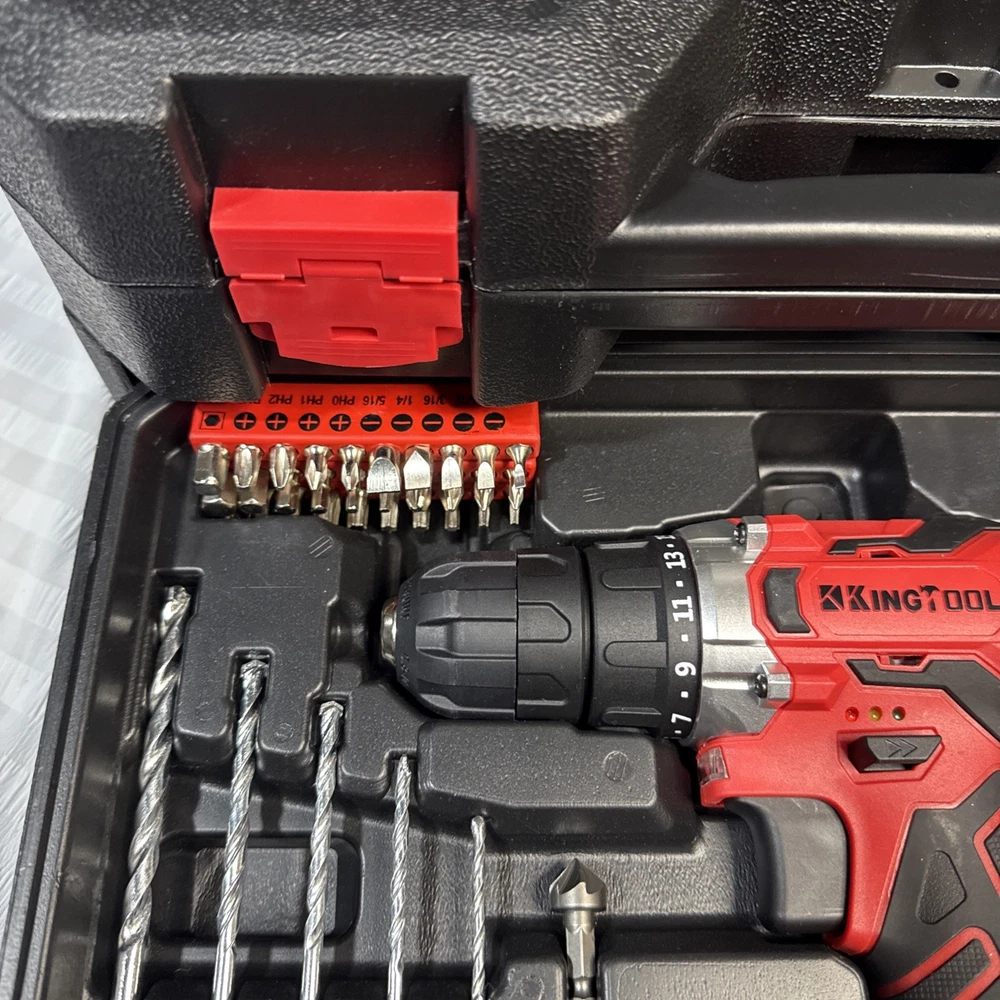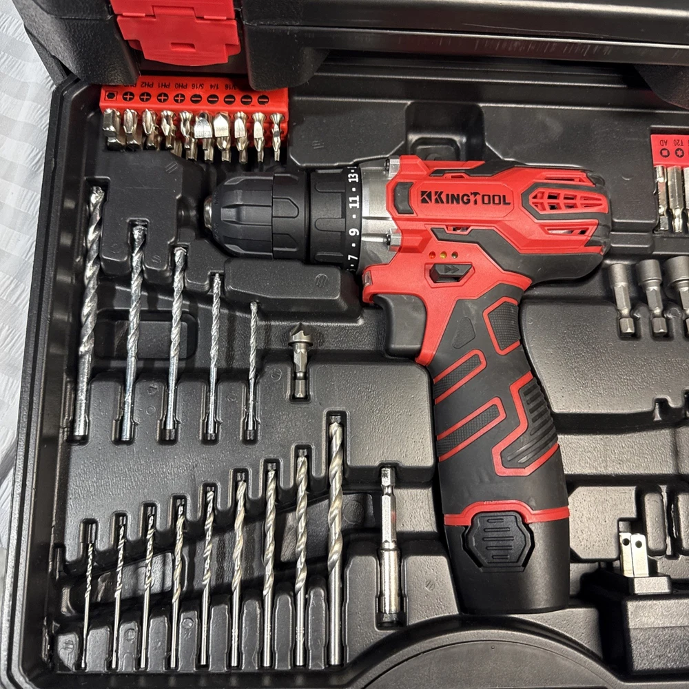 Country of Origin: China System of Measurement: Metric Color: Black/Red MPN: kingtool 325, KingTool 265 Case Type: Hard Type: Household Tool Set Finish: no gtin13: Does not apply Brand: KingTool UPC: Does not apply Case Included: Yes Tools Included: Hammer, Hex Key, Pliers, Screwdriver, Tape measure, Wrench, Tips, Drill Bits, Power Drill Number of Pieces: 265