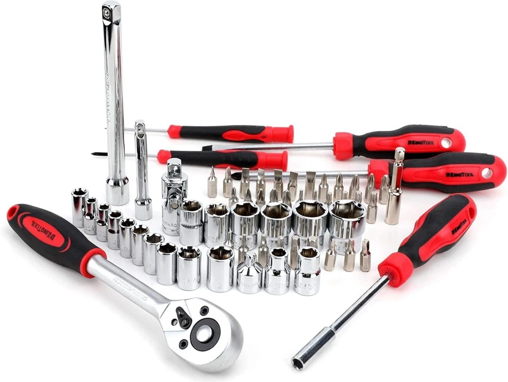 This tool kit is a game-changer for DIYers—everything you need in one sturdy case with a handy sliding drawer for extra storage! The high-quality chrome steel tools feel durable, and the TPR grips make them comfortable to use. Love how the molded compartments keep everything organized and easy to find. Perfect for home repairs, and it even meets ANSI standards. No more searching for scattered tools—this set has it all!
