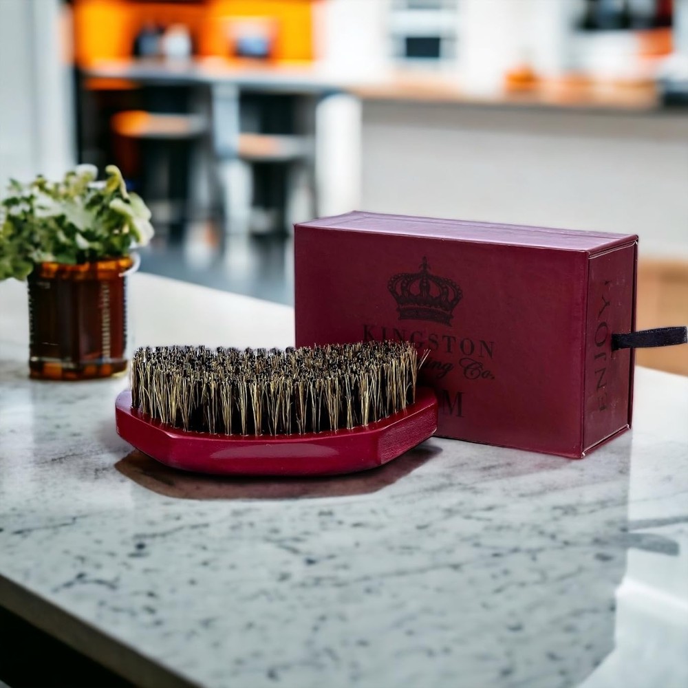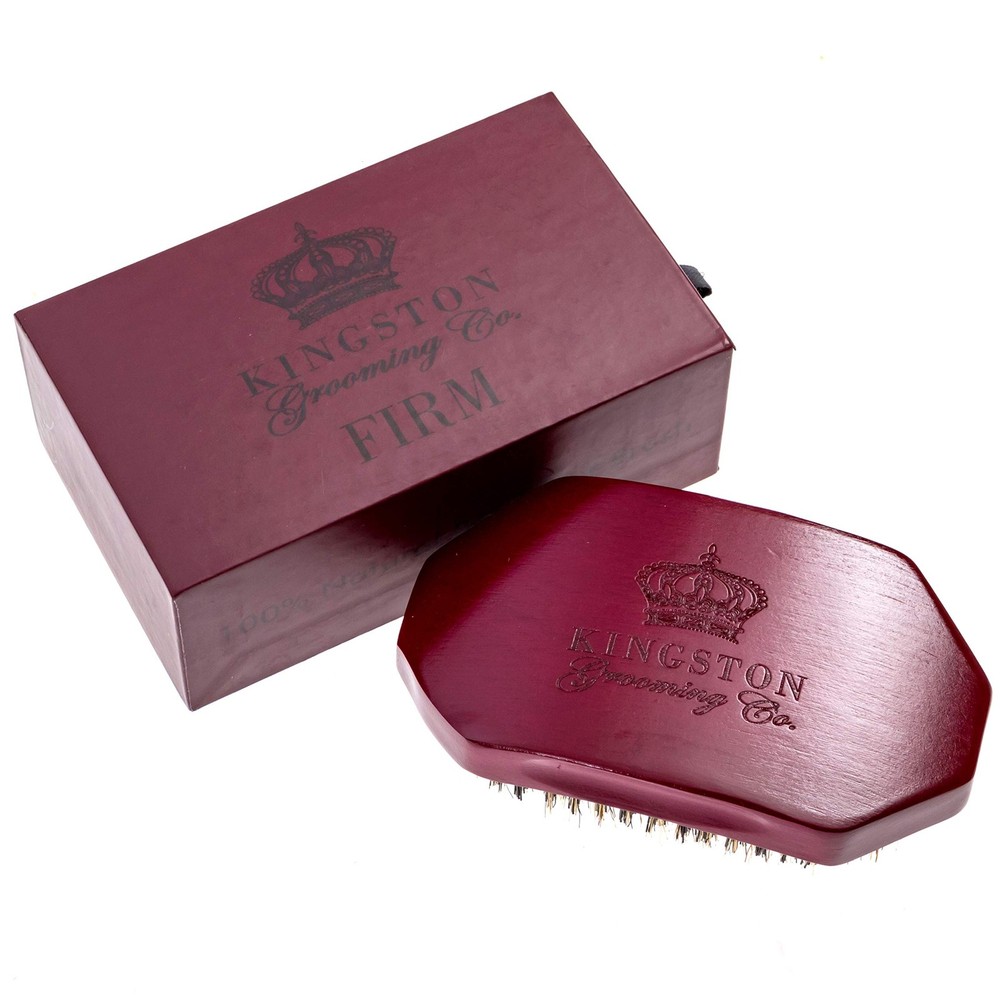 DO YOU HAVE FABULOUS 360 WAVES 🌊, AN AMAZING BEARD or GORGEOUS HAIR? Treat yourself to Kingston Grooming Company’s professional quality 50% Boar Hair, 50% nylon FIRM brush to keep it amazing! • The quality of this hard brush is unparalleled. Our curved design, perfect palm size (5 x 2.75 x 1.5inches) and premium, solid Beechwood handle are a cut above! • FIRM bristle stiffness is perfect to penetrate to the bottom of your 360 waves or beard without scratching or feeling too rough. • A perfect companion for your styling products… Oils, creams, balms, waxes and butters work GREAT with this brush. Our brush will distribute the product throughout your beard or waves so you’ll look great! • Our sturdy travel & storage box is perfect for protecting your brush and keeping it clean for many years to come. Kingston Grooming now has 3 different brushes for all your needs.🎉 The Kingston Original Soft (grey box), the Kingston Medium (blue box), and the Kingston FIRM (maroon box)! They are available individually or in a bundle kit and perfect for all your hair care needs! We love our customers! 💖 Our goal is to provide a superior product and superior that is unmatched in the market! If you are not 100% impressed with our brush we will immediately give you a full . Click “ADD TO CART” above.🛒✨