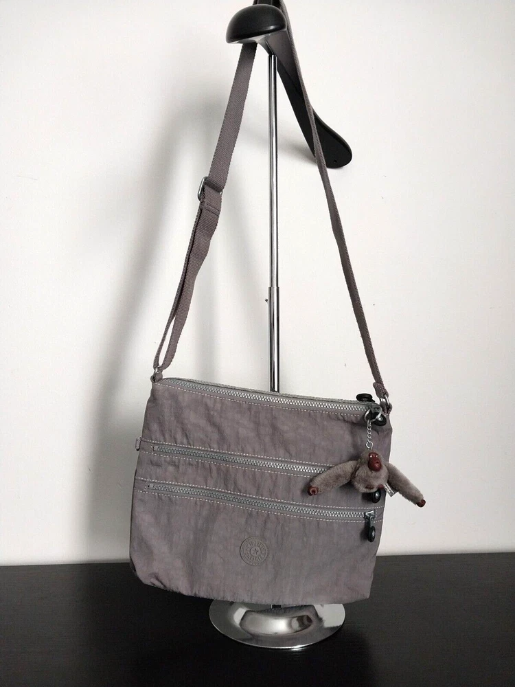 Kipling Women's Tote Zip Bag Crossbody Slate Gray w/ Monkey doll Key Chain