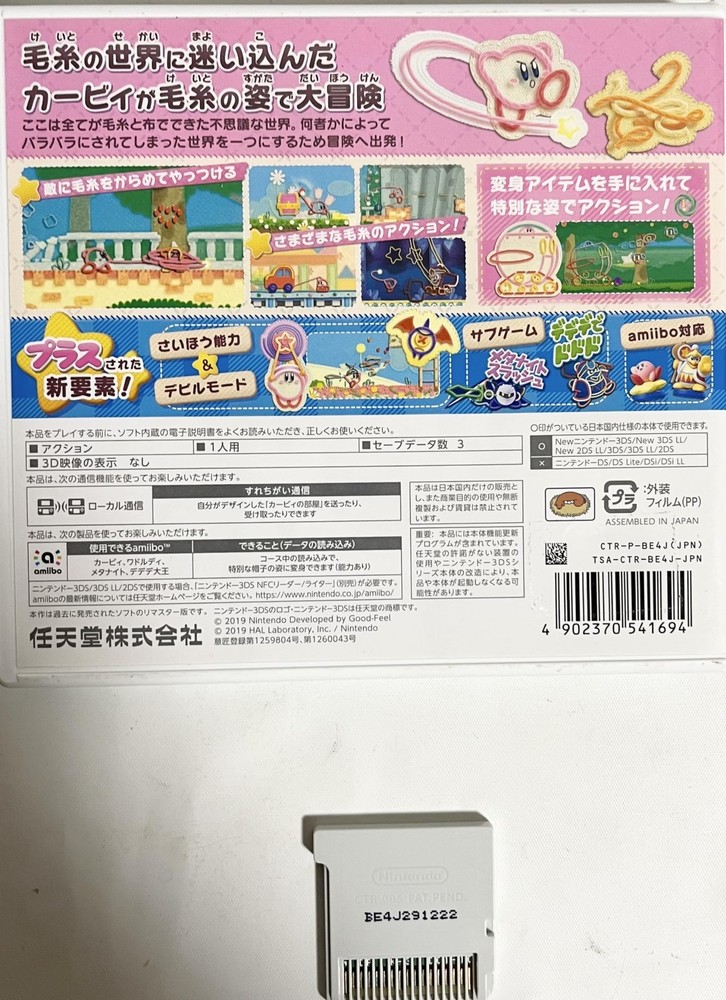 Thank you for visiting our page c18ngtk9tdUsed.VeryGood Detail Kirby's Epic Yarn Plus - 3DS book form JP [ Condition ] Used.VeryGood New elements have been added to the Wii game "Kirby's Epic Yarn" and it is now available on Nintendo 3DS. You can enjoy all the courses from the Wii game "Kirby's Epic Yarn" released in 2010. All products in our shop are in Japanese. The language is the Japanese version. [ Brand ] Nintendo [ Release Date(yyyy/mm/dd) ] [ Note : Pre-Order (P/O) ] If title has "Pre-Order", we will ship out as soon as released. We want all buyers to understand there is possibility that the manufacturer will change contents, date and quantity for sale. [ Country of Manufacture ] If "Made in Japan" is NOT described on whole listing page, Items are manufactured in other country (China, Vietnam and etc.). [ Manual & Menu Language ] We treat Japanese Market Usage Items. So items have only Japanese Manual & Menu Language. Please contact us if you would like to know more details. *Japanese Menu Only : Panasonic Camera *English Menu available : Nikon, Canon [ Warranty ] Japanese Warranty Only. Buyers need to send item to us in Japan to repair with warranty & own all shipping cost. If you need to repair item in your country with warranty, please do not order this item. [ Electronics ] Japan Usage Item. Voltage:100V, Plug :Type A, FM Tune:70-90MHz Please check your country's condition for use. [ Multiple sizes and colors ] Before your payment, please contact us about stock of size & color. Payment [ International Buyers - Please Note ] - Import duties, taxes and charges are not included in the item price or shipping charges. These charges are the buyer's responsibility. -Customs and duties: For buyers in the United States: Import duties and taxes are included in the item price or shipping cost. Items shipped to the U.S. are sent under the Delivered Duty Paid (DDP) method, which means all import-related charges are prepaid. You don’t need to pay any additional fees when your order arrives. For buyers outside the United States: Import duties, taxes, and charges are not included in the item price or shipping cost. These charges are the buyer’s responsibility. Please check with your country’s customs office to determine what these additional costs will be before bidding or buying. - Please check with your country's customs office to determine what these additional costs will be prior to bidding/buying. - These charges are normally collected by the delivering freight (shipping) company or when you pick the item up. Please do not confuse them for additional shipping charges. Please pay within 3 days after your purchase. Shipping [ Method ] level country service name speed track number standard worldwide AIRMAIL about 2~3 weeks yes expedited worldwide DHL or FEDEX about 1 ~2week yes [ Shipping Address ] We ship to only address where be registered by ebay. If your address is in a remote area, you will need to pay an additional shipping fee. [ Other Carrier ] We can arrange shipment by DHL and fedex and jp post. Everything comes with a tracking number. We will send you a tracking number once we ship. Please ask us about Handling Time and Price. [ Combine shipping & Large Quantity ] Please contact us for combine shipping & large quantity deals before payment. We do our best for you!!!!! [ Order Processing & Handling Time ] Your order will be shipped within 5~7 business days (excluding Saturday, Sunday & Japan's Holiday) after the payment is confirmed. [ Compensation & Insurance] When you choose EMS, in order to receive compensation, it is necessary to open the box and check your item with delivery staff at the time of delivery. If you don't do that, you may not receive compensation and new item from us even if your item is damaged and lacked. [ Li-ion Battery ] Some countries( Germany,France,Italy,Mongolia,SriLanka,Turkey,Nigeria and more.) does not accept lithium battery via EMS, SAL by Post Office. Please check your country's rule yourself. If we receive order from buyer who located in these countries, we will ask buyer to choose 1 from 3. 1. Ship without Ri-ion Battery removed from item. 2. Change shipping method to Fedex or DHL with additional shipping cost. 3. Cancel