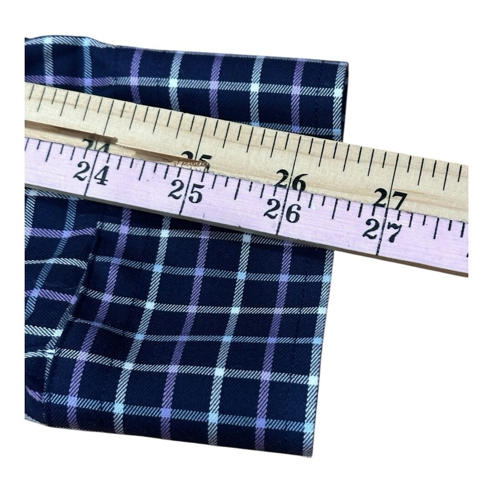 Kirkland Shirt Mens XL Blue Purple Check Button Down Long Sleeve Shirt Non Iron Condition as shown in the photos Please see photos for measurements Blue, purple, and white check Size XL 100% Cotton 2236
