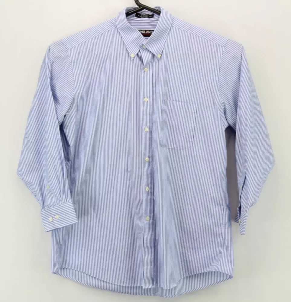 UPC: Does not apply Collar Style: Button-Down Features: Quality Brand Name, Chest Pocket, Non-Iron Vintage: No Product Line: Kirkland Signature Neckline: Collared Color: Multicolor Year Manufactured: 2010-2019 Country/Region of Manufacture: China Shirt Length: Please See Measurement Photo Top Cuff Style: Standard Graphic Print: No Neck Size: 16.5 in Placket Type: Standard Size: 16.5 Accents: Button Fabric Type: Cotton gtin13: Does not apply Closure: Button Handmade: No Sleeve Length: 32 MPN: N/A Garment Care: Machine Washable Personalization Instructions: N/A Personalize: No Season: Winter, Spring, Fall Dress Shirt Size: 16.5-32 Character Family: Free! Chest Size: Please See Measurement Photo Department: Men Sleeve Type: Standard Occasion: Casual, Travel, Workwear, Business, Party/Cocktail Manufacturer Color: Unspecified Character: Free Pattern: Striped Fit: Regular Brand: Kirkland Signature Size Type: Regular Material: 100% Cotton Model: Unspecified Fabric Wash: N/A Theme: Classic Type: Dress Shirt