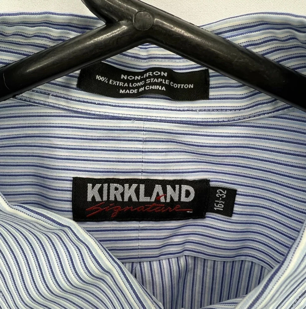 Kirkland Signature Mens Button Down LS Shirt Size 16.5 32 Multicolor Striped
