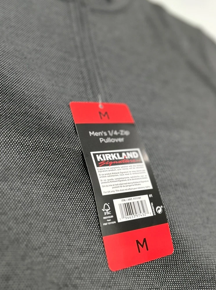 Kirkland Signature Men’s Quarter 1/4 Zip Pullover Size: Medium Color: Black Features: Quarter Zip Pullover Contents: 37% Cotton 37% Modal 26% Polyester