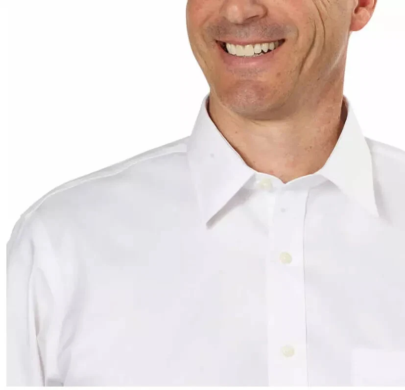 Kirkland Signature Men's Tailored Fit Dress Shirt Size: 16-33 Color: White Content: 100% Pima Cotton