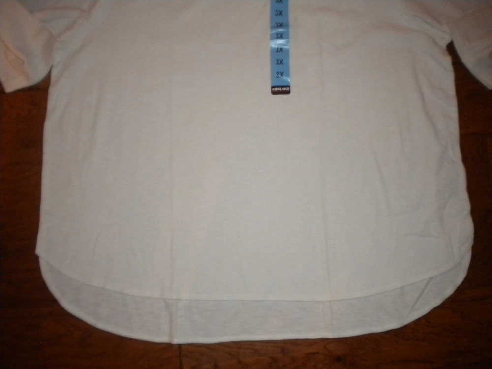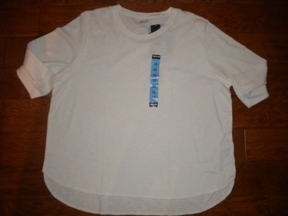 New with tags. Kirkland Signature Women's Plus Size 3X White Cotton Slub Tee T-Shirt NWT. Pullover. 100% Cotton. Chest about 60". Length about 29" in front, 30 1/2" in back. Weighs about 10oz. Buy with Confidence Over 24K+ Positive Feedback's, a long time Seller. Measurements are approximate and can vary depending on where the measurements start and end. Unfortunately, I cannot guarantee fit, but I try and give as much information as possible to help you make a great Purchase. Shipping is based upon weight (which I provide in all listings) and the Shipping Option you choose, 4 options are available. The shipping offered is a Discounted Shipping passed onto the Buyer. Please understand that I do my best to describe color. I can't guarantee that my Color will be your exact Color since Monitors and Opinions Vary. Offers are considered on certain items, use the "Best Offer" button. Sorry, I DO NOT ACCEPT RETURNS, feel free to ask questions. Each month I select a Charity to Donate to for many of my listings. I try and use recycled Shipping Materials whenever possible. Your business is appreciated and if you like what you see, browse my Store to find more items you will love or add me to your Favorites. New items added Daily. 3i