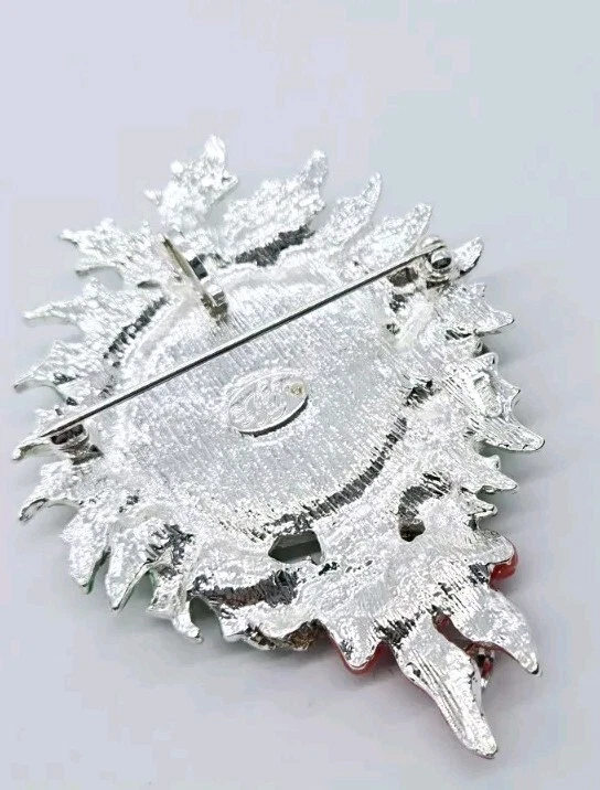 Plated Sterling Silver tone. Measures approximately 2" wide x 3" long.