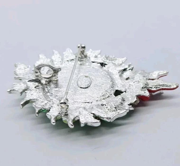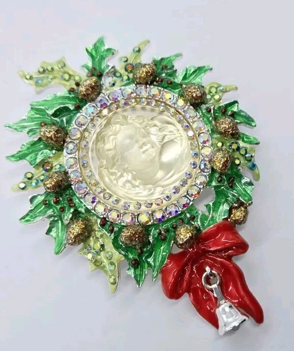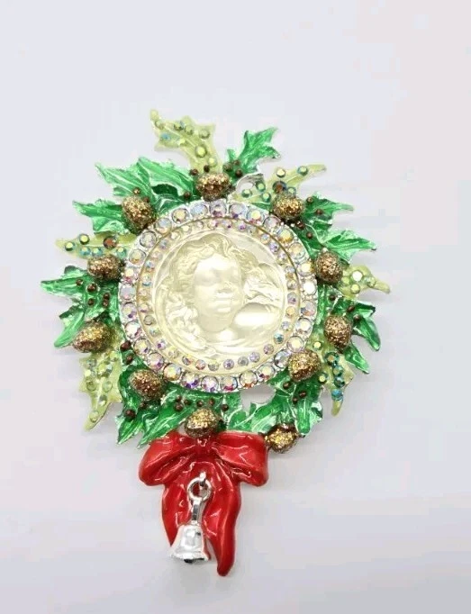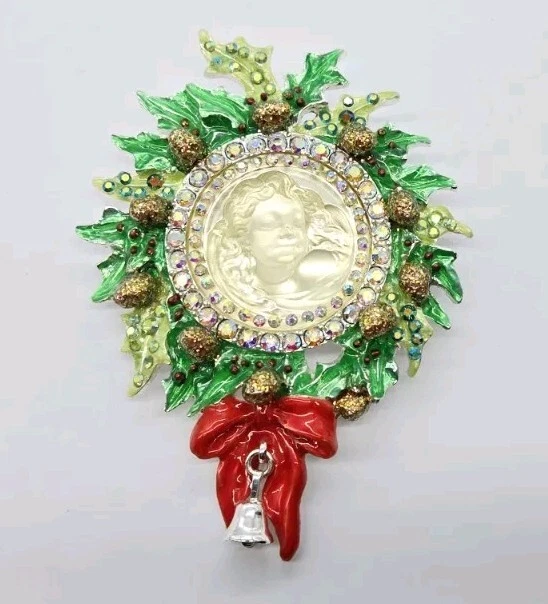Kirks Folly Dream Angel Holly Berry Wreath Brooch Pin Pendant Silver tone RARE