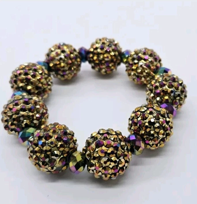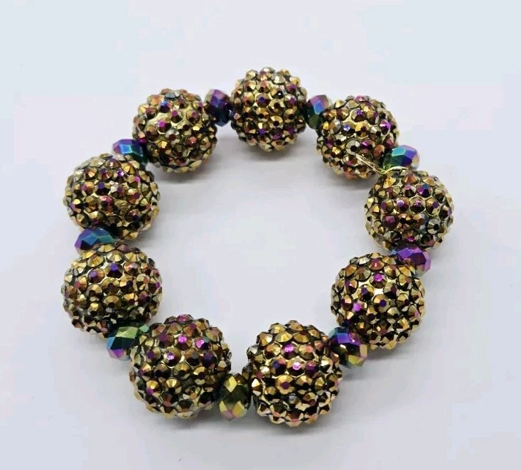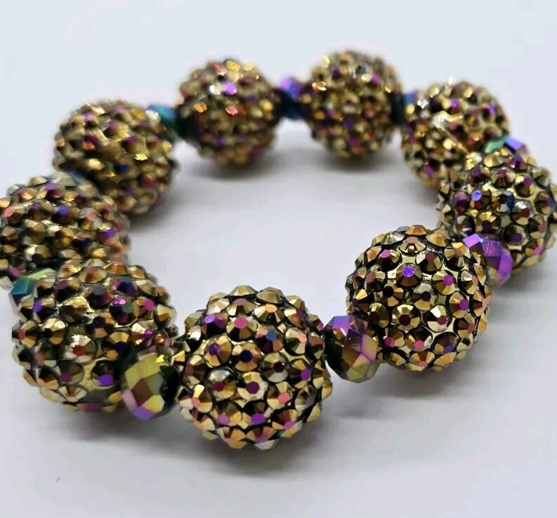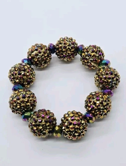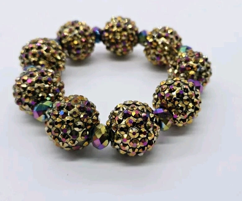 Kirks Folly Fire Ball Bracelet Stretch Crystal Statement Amber Brown AB