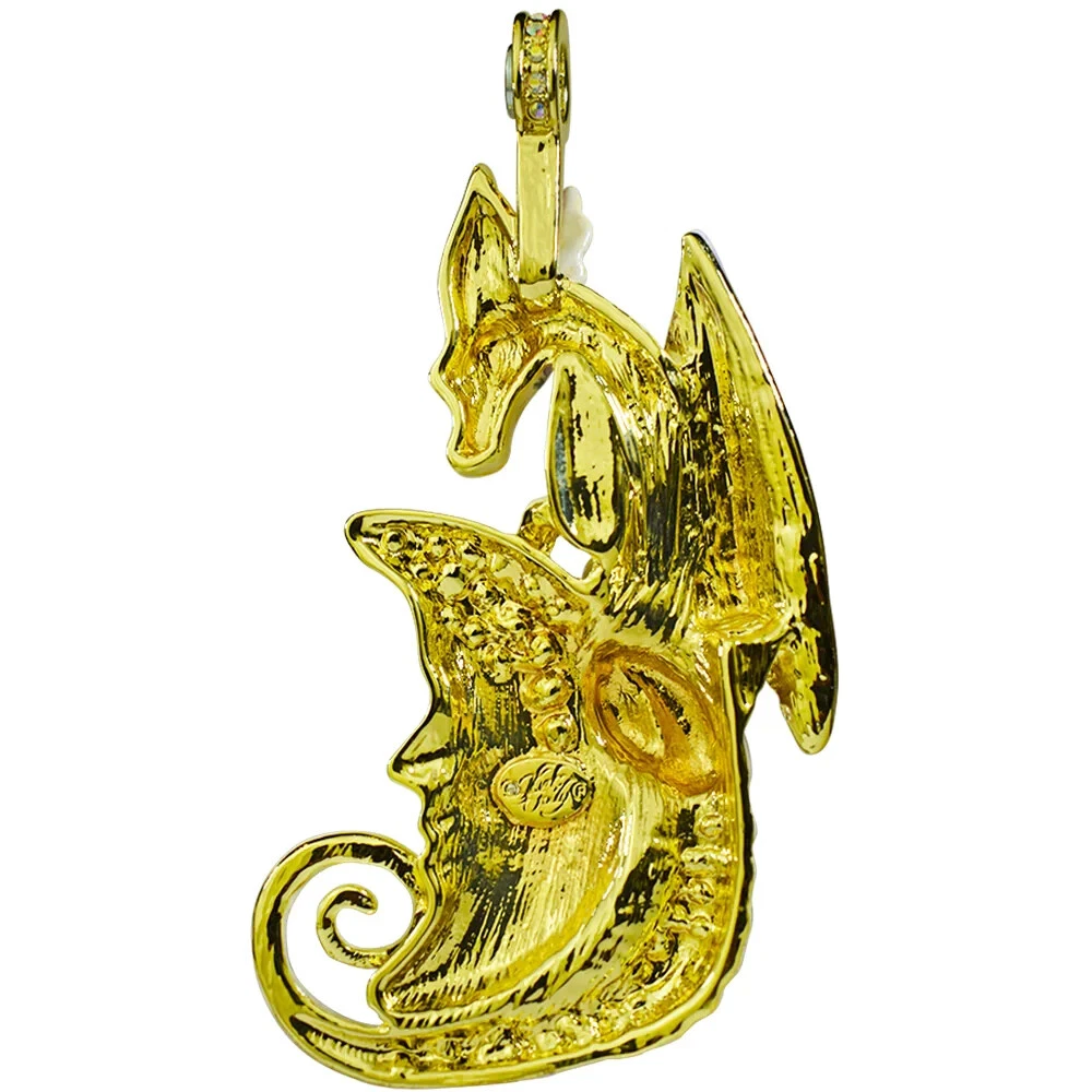 KIRKS FOLLY Goddess Metallic Moon Shadow Dragon Magnetic Enhancer (src25) Brand New ~ Fabulous ,Fun, Magical ~ A sweet little dragon clings to a Goddess metallic moon shadow on this Magnetic Enhancer. The dragon is hand enameled in soft shades of lavender, green and pink and her tail is sparkling with faceted crystals. Although this dragon is young and shy, as all dragons do, she will grow to become strong and wise with the heart of a dragon! Plated Goldtone. Measures approximately 2" wide x 3" high. Kirks Folly Magnetic Enhancers Can Only Be Worn With Kirks Folly Magnetic Necklaces.