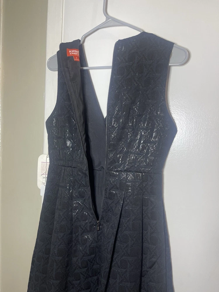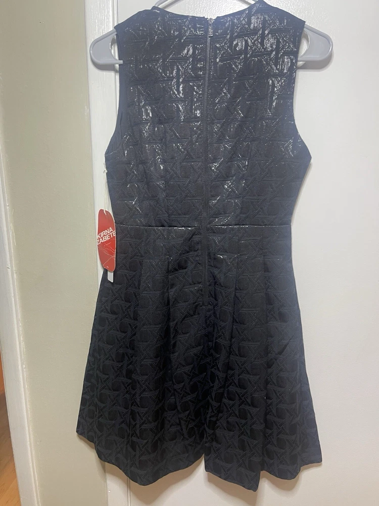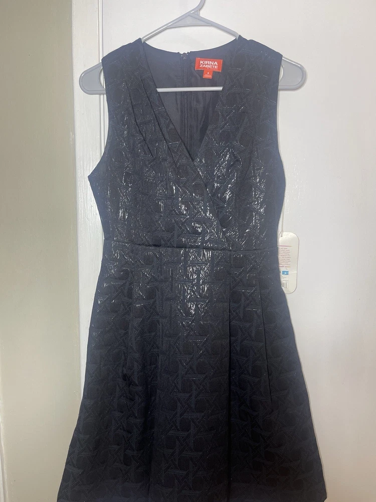 This Kirna Zabete Target Little Black Dress is a stunning addition to any wardrobe. The dress features a geometric metallic pattern that adds a touch of Italian designer style. With a flattering V-neckline and sleeveless design, this dress is perfect for any occasion, whether it be a formal event or a casual day out. The dress has a zip closure and a fit & flare style that accentuates the waistline. It also includes pleated accents and a zipper for added flair. The dress is machine washable and made of a combination of polyester and cotton materials, making it comfortable and easy to care for. this dress is perfect for women who want to look and feel their best.