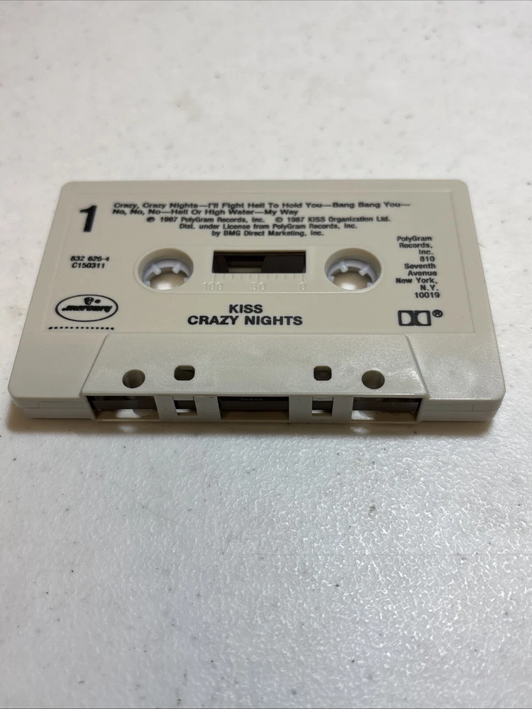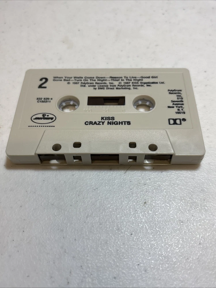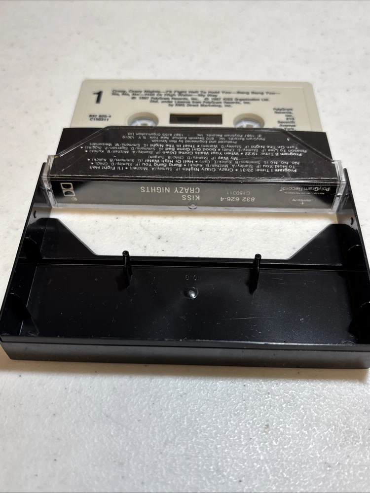 Immerse yourself in the electrifying atmosphere of Kiss' Crazy Nights with this classic cassette tape. Released in 1987, this album is a quintessential piece of the Glam/Hair Metal and Hard Rock genres, taking listeners on a journey through the iconic sounds that defined the 1980s rock scene. Experience the raw energy and unmistakable style of Heavy Metal legends Kiss, as they deliver hit after hit on this beloved cassette format. Perfect for collectors and music enthusiasts alike, add this piece of rock and metal history to your music library today.