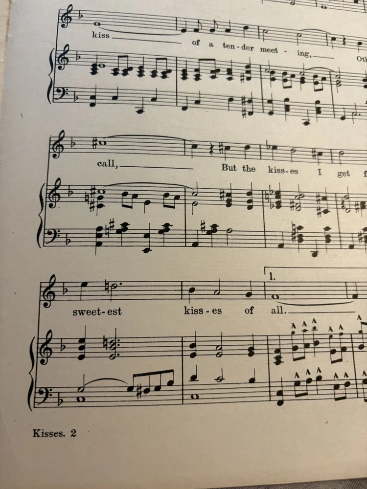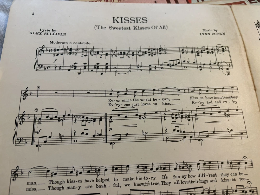 THIS LOOKS BRAND SPANKING NEW ACCEPT FOR PAPER AGING. PERFECTLY MINT. The product is a vintage sheet music titled "The Sweetest Kisses of All" by Cowan and Sullivan, published in 1918 by McCarthy and Fisher. It is designed for an orchestra ensemble with piano accompaniment, catering to intermediate-level musicians. The sheet music originates from the United States and falls under the genre of Musicals, providing a nostalgic and charming piece for musicians and collectors alike.