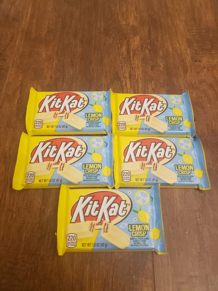 Brand new sealed never opened.. Judge for yourself.. Shipped safe and secure... Ask for additional questions or for any details.. The Kit Kat Lemon Crisp Wafers are a limited edition treat with a lemon-flavored crème candy filling sandwiched between crisp wafers. Each bar contains 220 calories and comes in a pack of 10 single bars. This American-themed chocolate sweet & assortment is perfect for any occasion, boasting a unique rectangular shape and white chocolate flavor. Made in the United States, these decadent snacks are sure to satisfy your sweet tooth with each serving size of 1 bar.